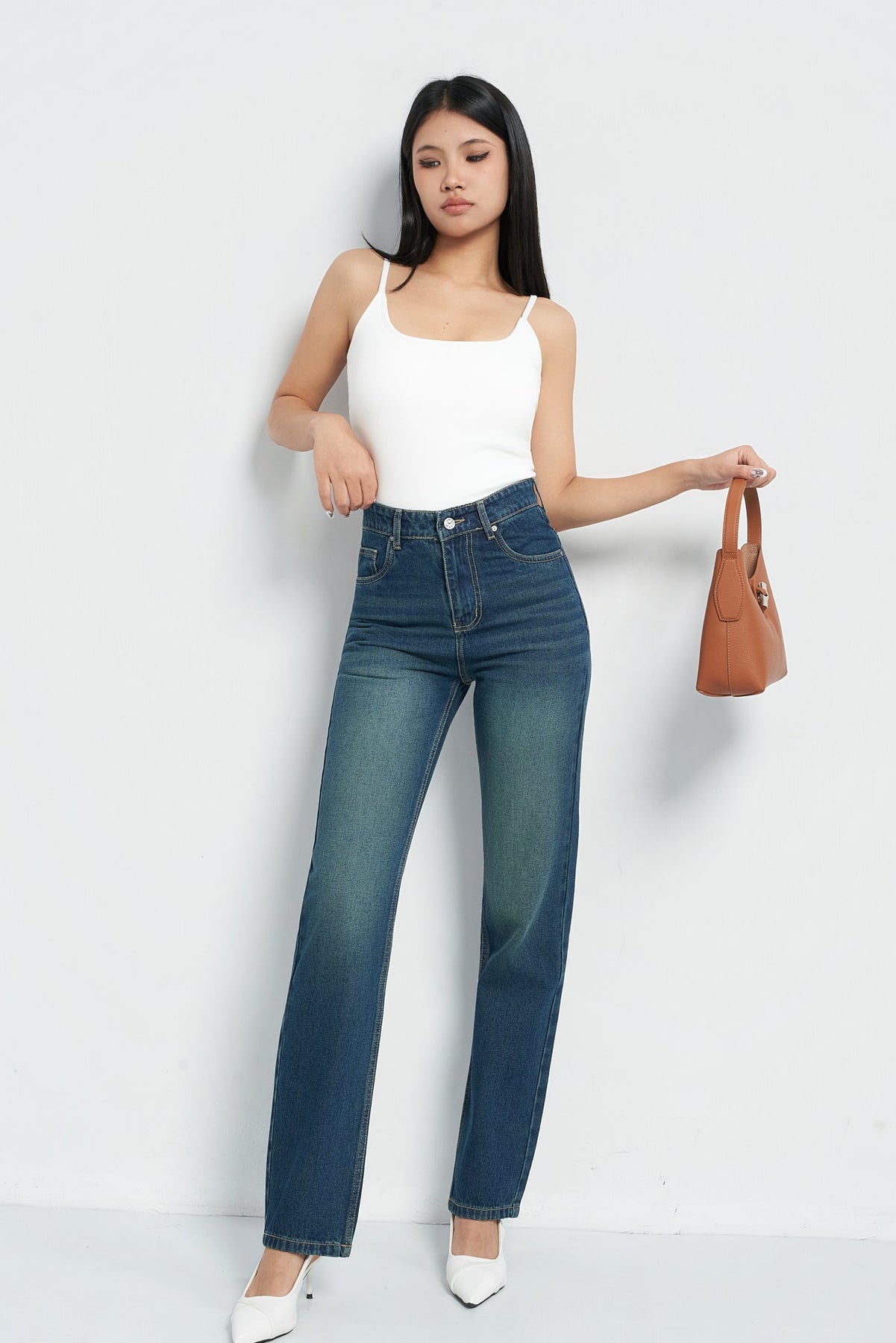 Product Name : Wash Out Indigo Blue Tailored Straight Leg Jeans