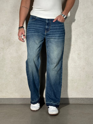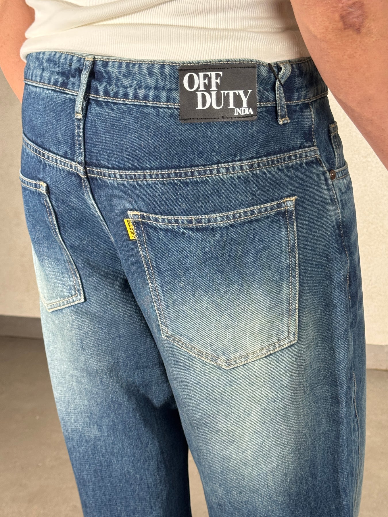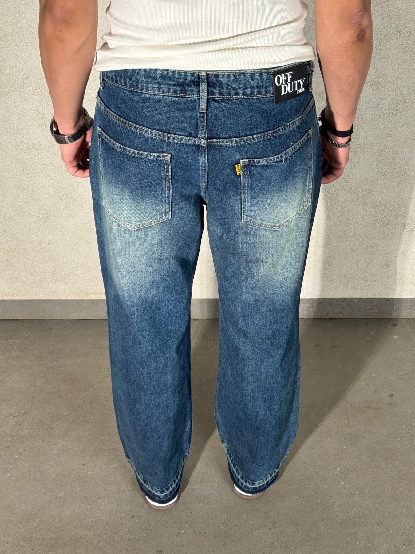 The Raw Fringed Washed Baggy Jeans bring a modern, relaxed silhouette with an artisanal touch. Designed with a roomy baggy fit, these jeans feature a raw-edge hem that’s revealed after washing, giving each pair a unique, lived-in character. The indigo wash is enhanced with subtle spray and whisker effects, adding depth and a handcrafted feel. Cut from 12 oz non-stretch cotton, they maintain structure while offering effortless everyday wear.