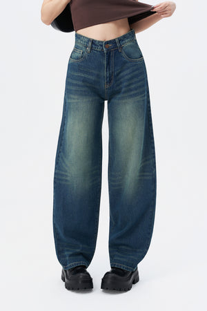 Grey Vintage Washed Wide Leg Baggy Jeans