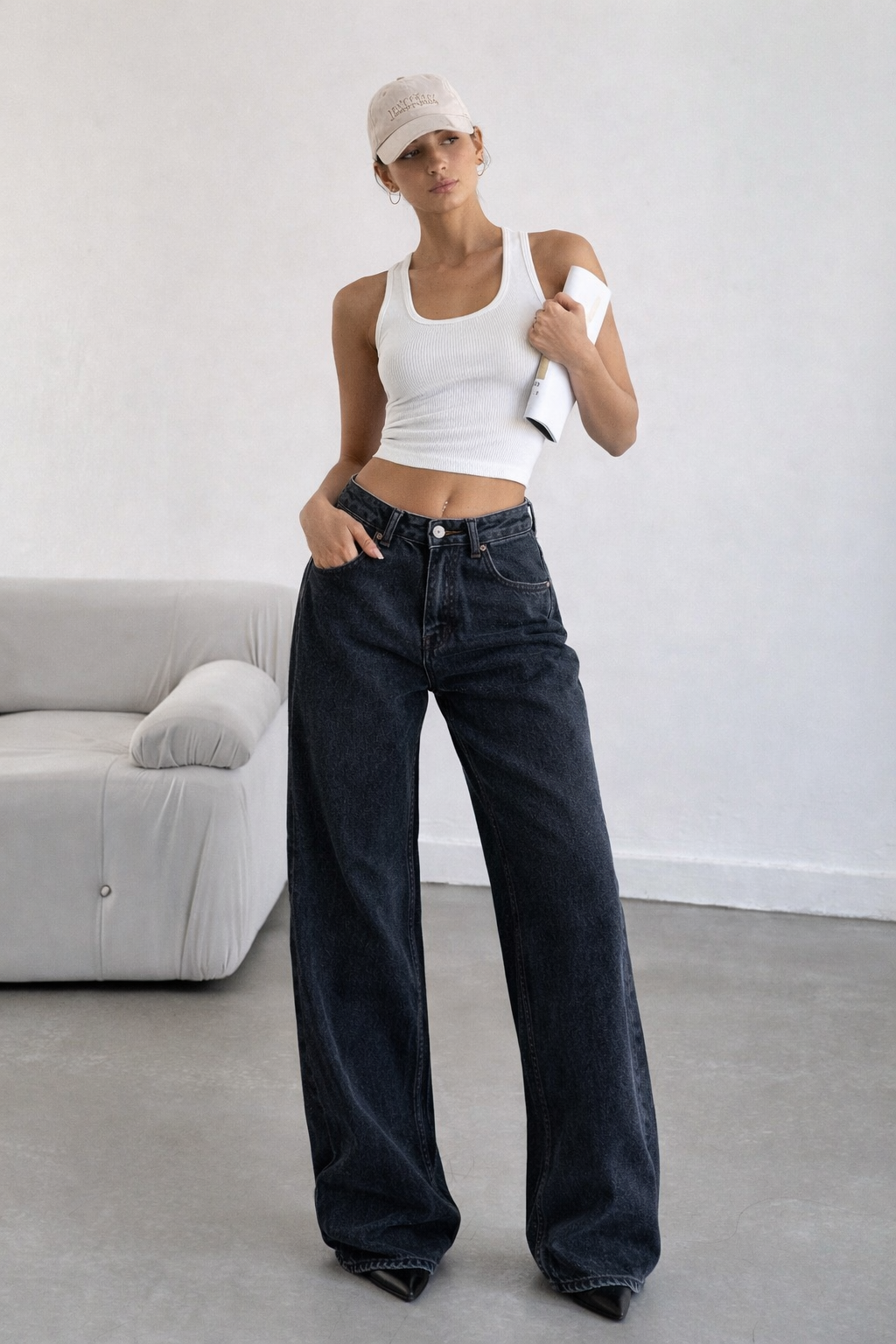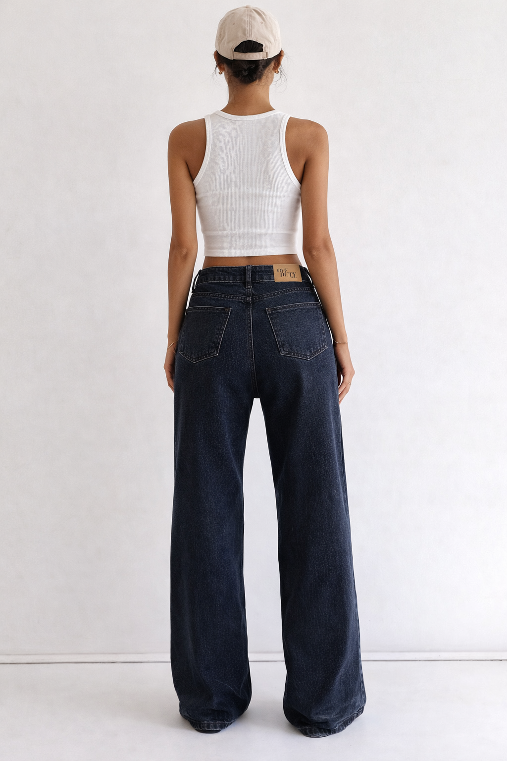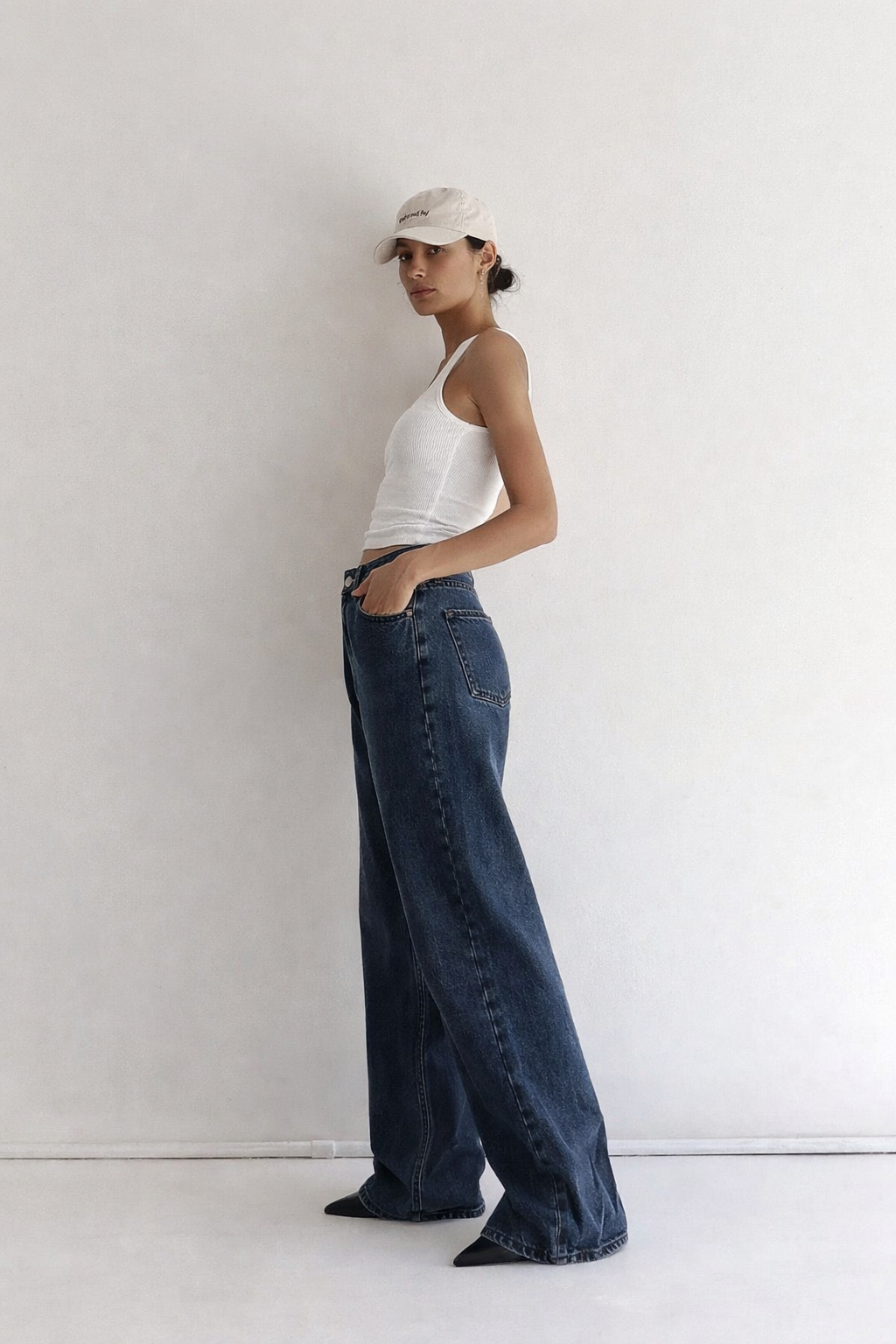These High-Rise Wide-Leg Jeans offer a clean, sophisticated silhouette that elongates the frame while keeping things effortless. Crafted in structured, non-stretch denim with a deep indigo rinse, they strike the perfect balance between polished and relaxed—an essential for modern wardrobes.