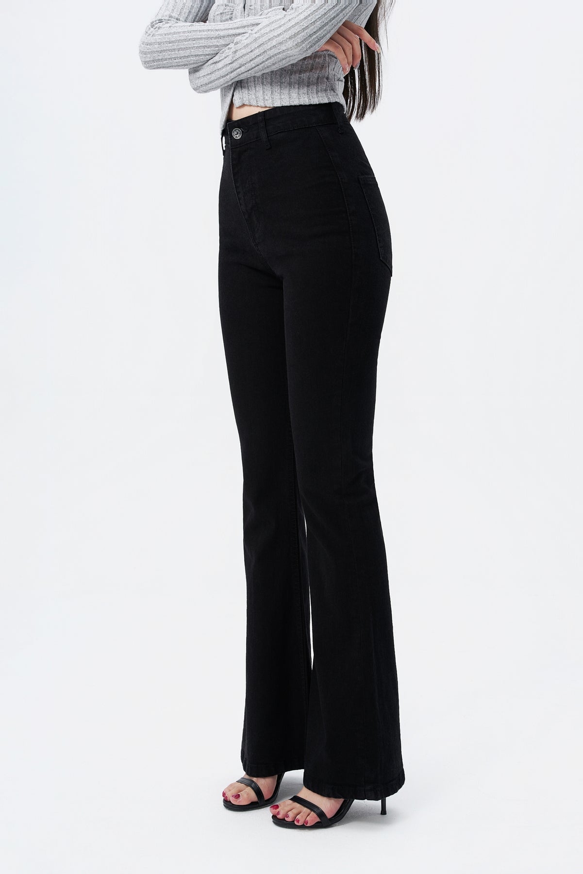 The Black Ultra High Rise Flare Jeans are the perfect addition to any wardrobe. They are made from a stretchy, comfortable fabric that makes them easy to wear. With a high rise and a flare leg, these black jeans are perfect for any occasion.