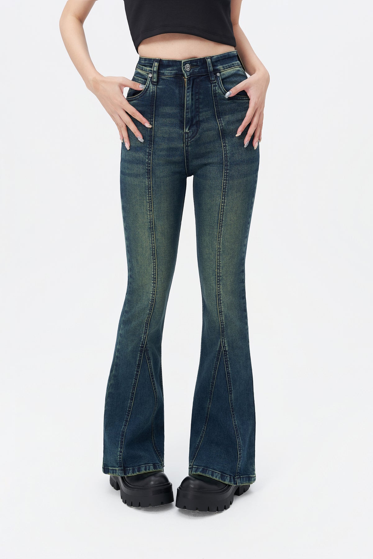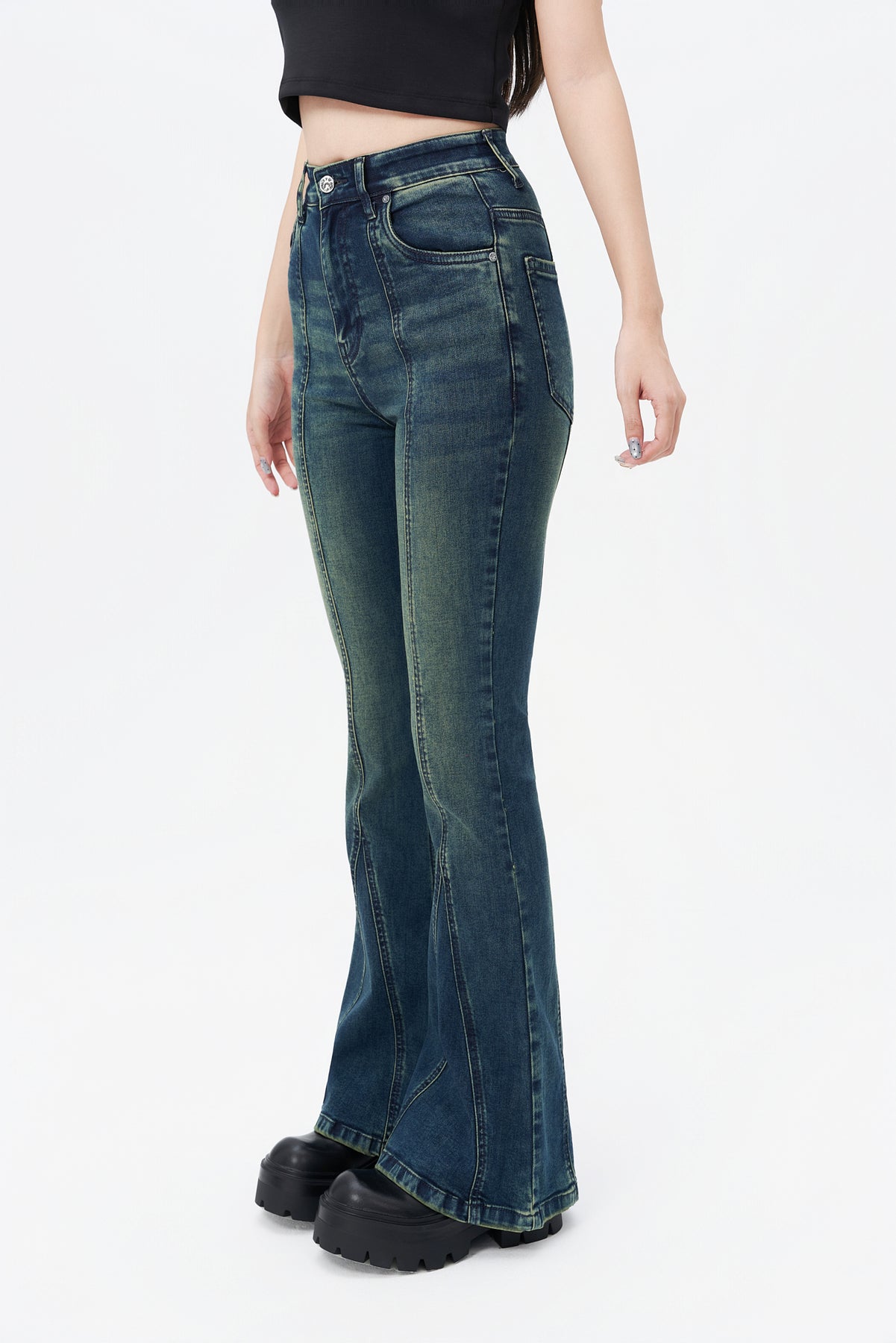 Style: Flared jeans with raw hem