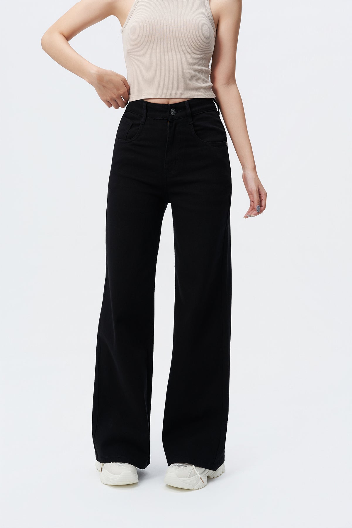 • Style: Wide-leg, high-rise jeans