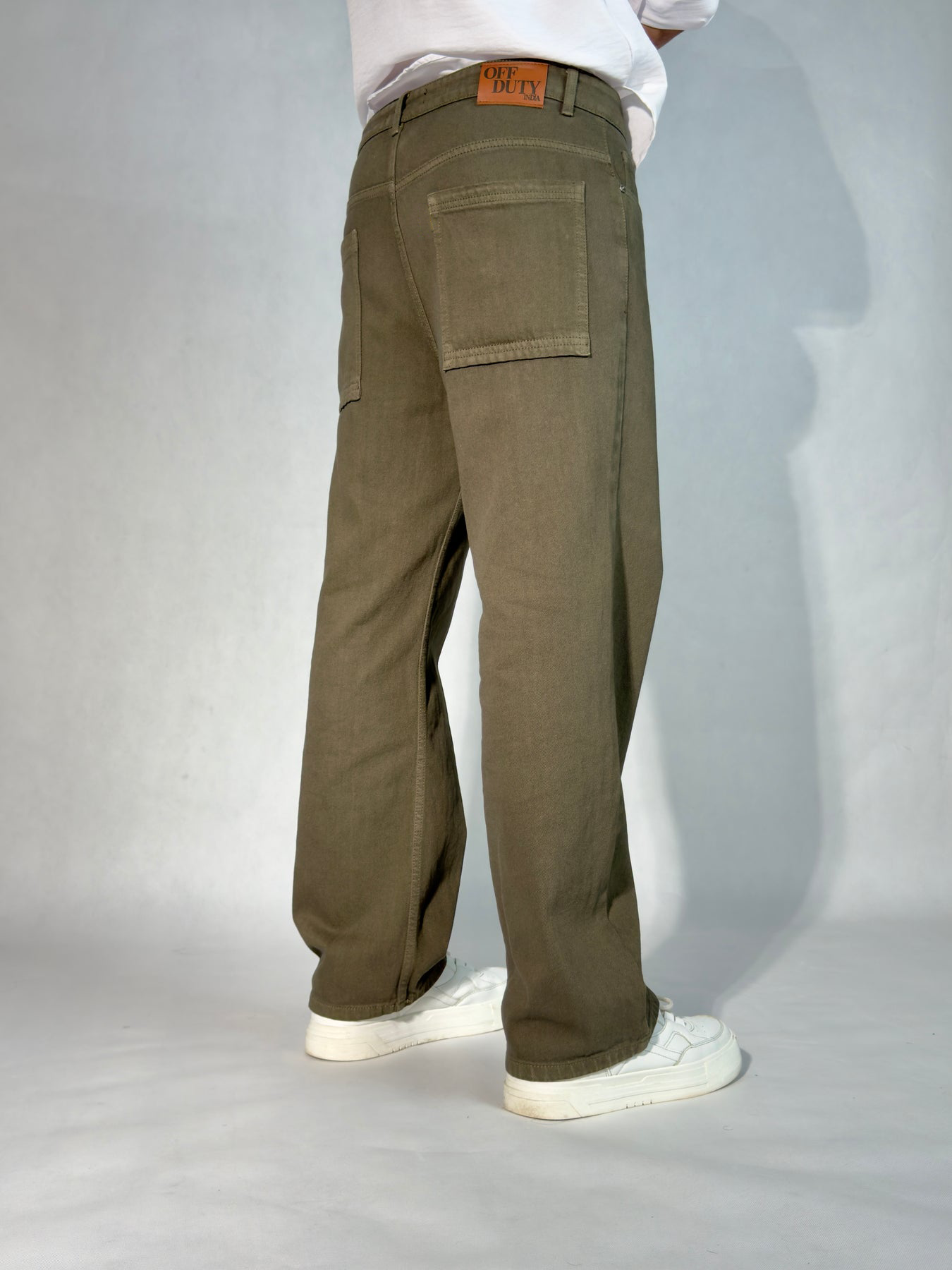 Army Green Baggy Fit Straight Leg Jeans