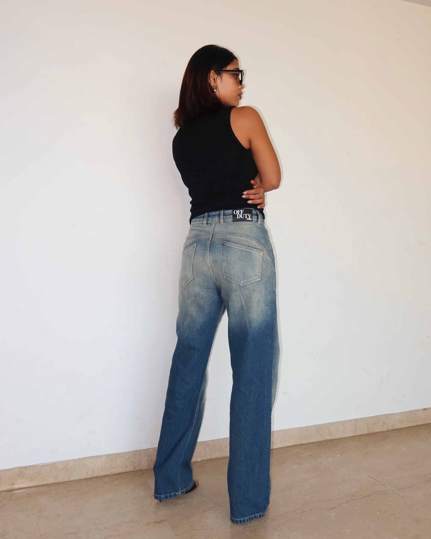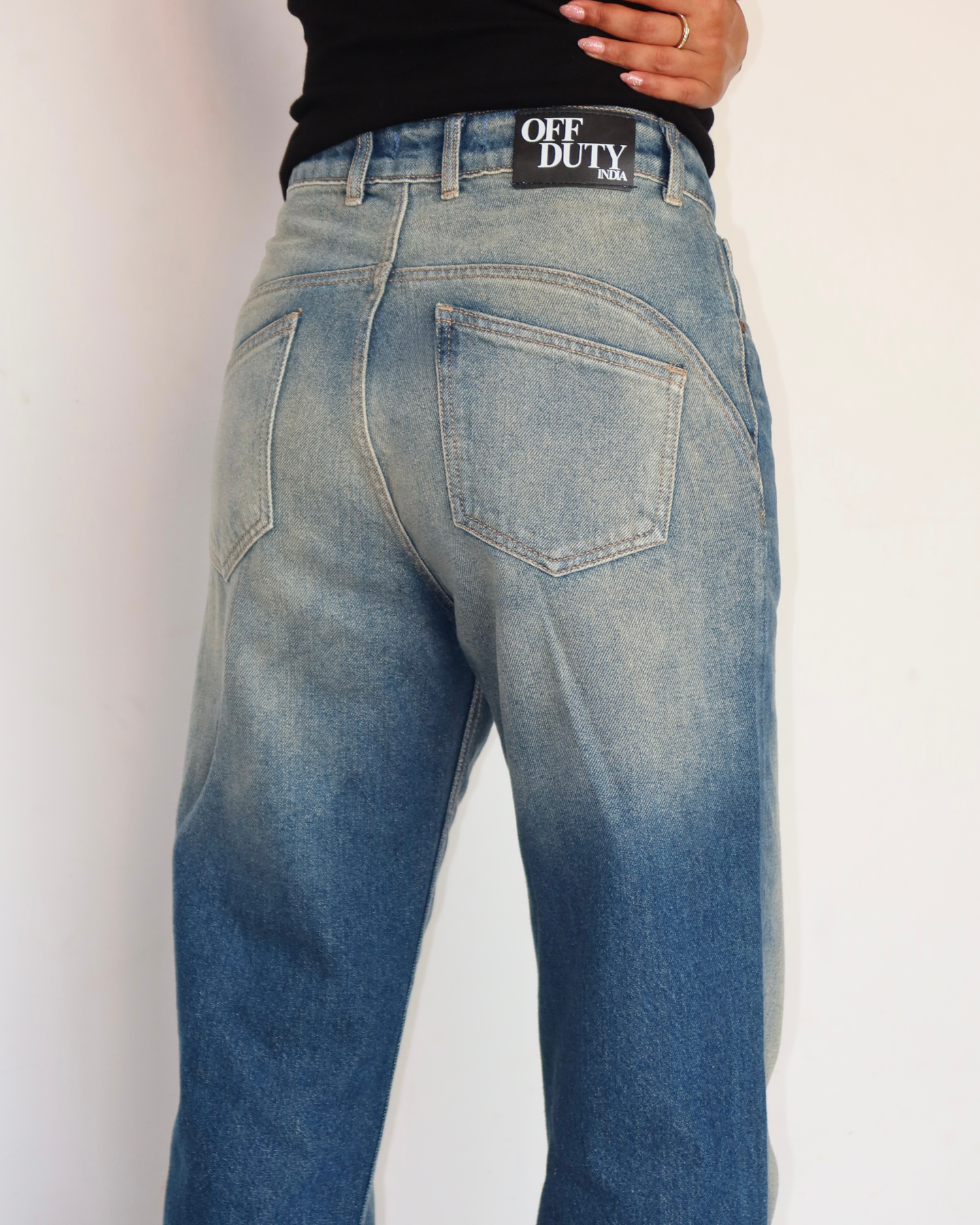 The Blue Code Straight Leg Jeans channel a vintage-inspired edge with a relaxed, easy fit. Designed in a high-rise with a straight cut, they feature a bold mid-blue base accented by faded highlights that give them a worn-in, street-ready look.