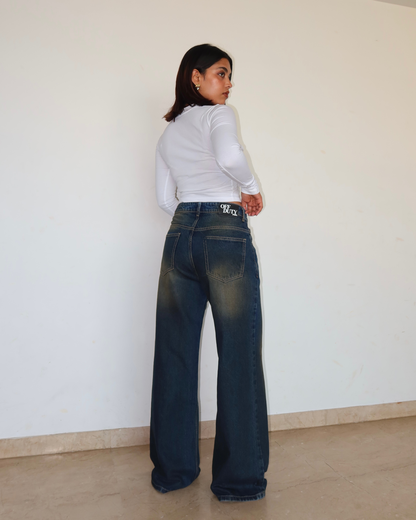 The Golden Fade Wide Leg Jeans combine a laid-back silhouette with a vintage-inspired wash. Featuring a roomy wide-leg cut and a sun-tinted faded blue finish, they bring effortless retro charm with modern wearability.