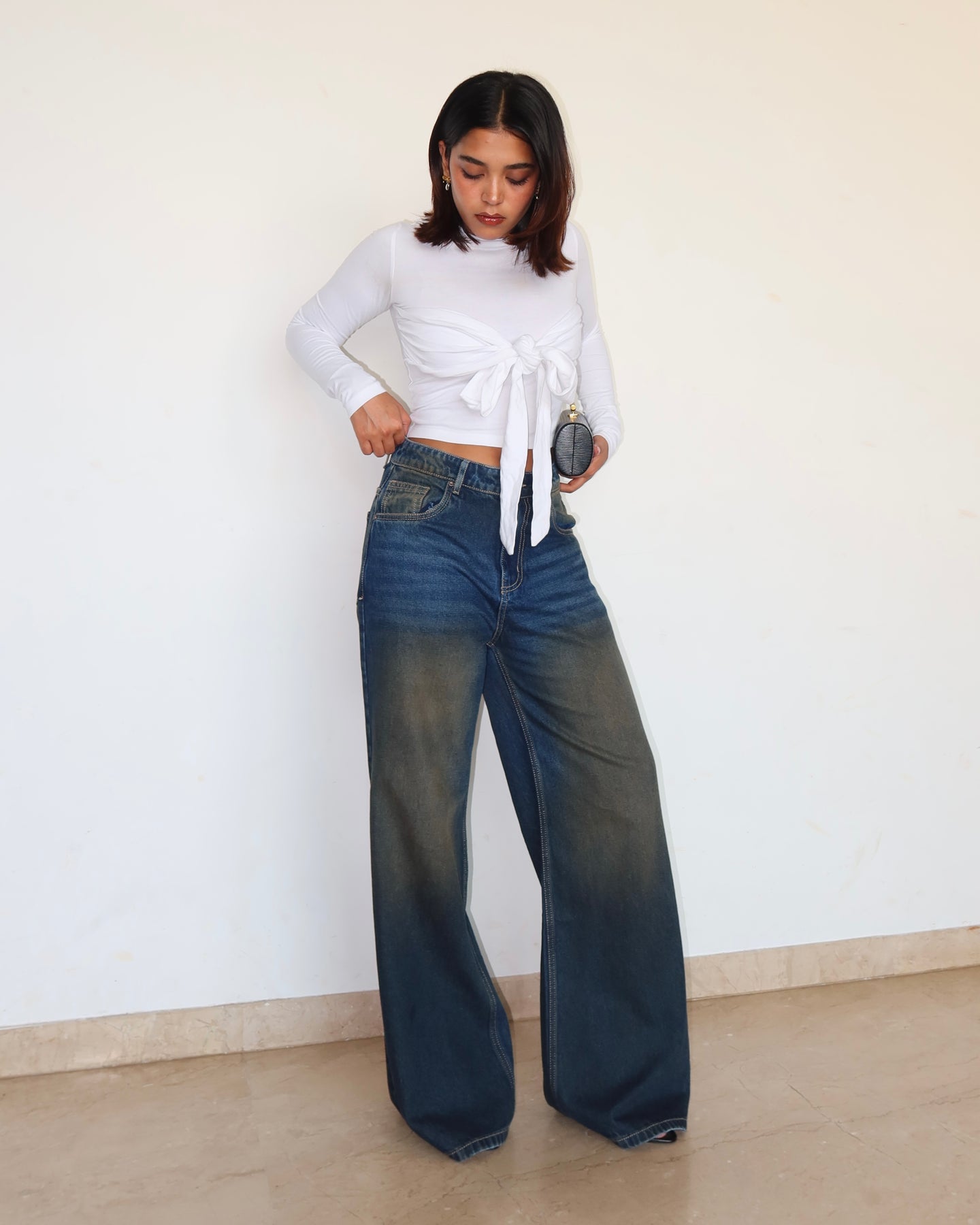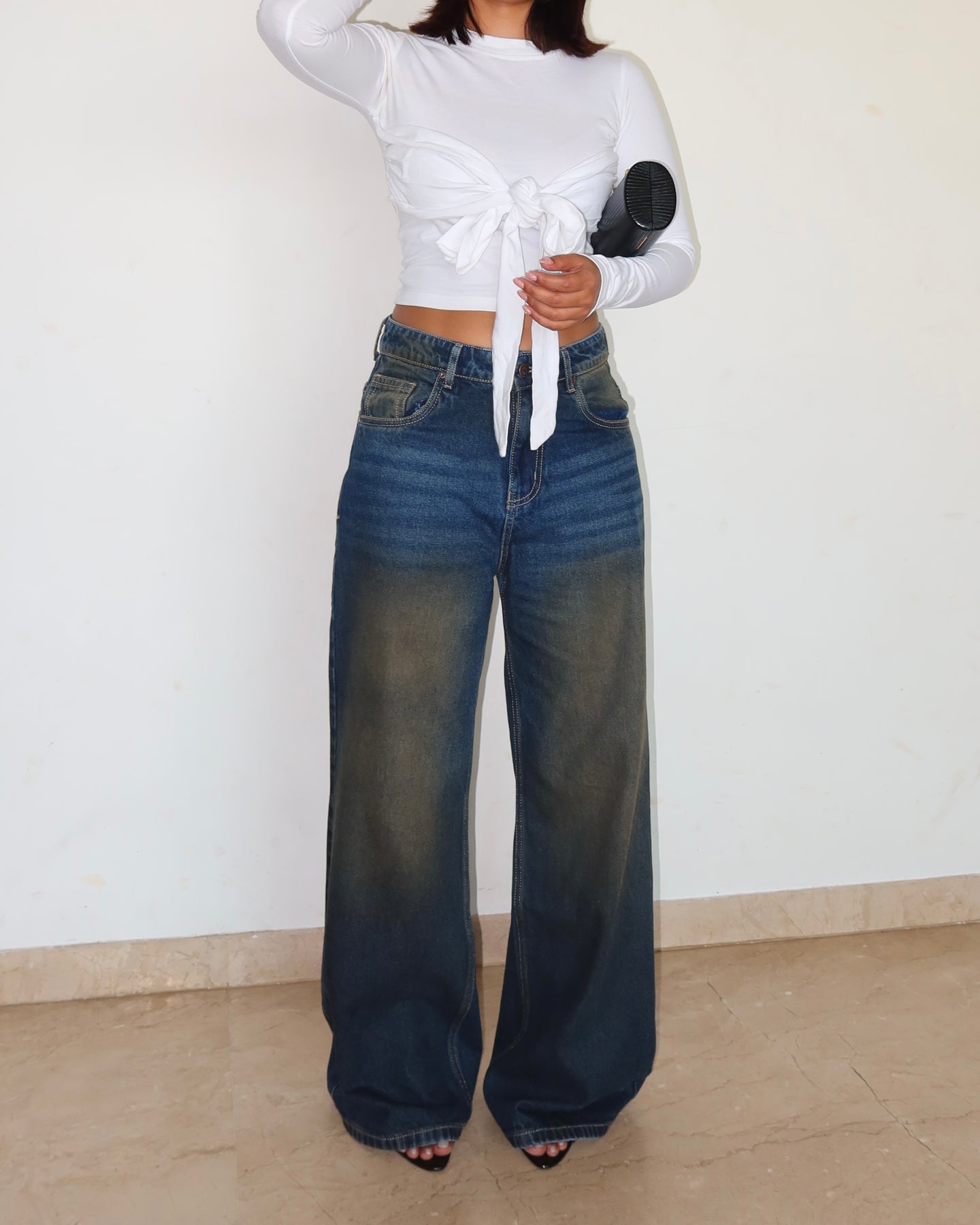 I was nervous about wide-leg jeans, but these surprised me! The fit is flattering, the fabric falls beautifully, and the length works well with platform sneakers or boots. The Desert Blue Dust wash is also really soft and cool-toned — perfect for any season