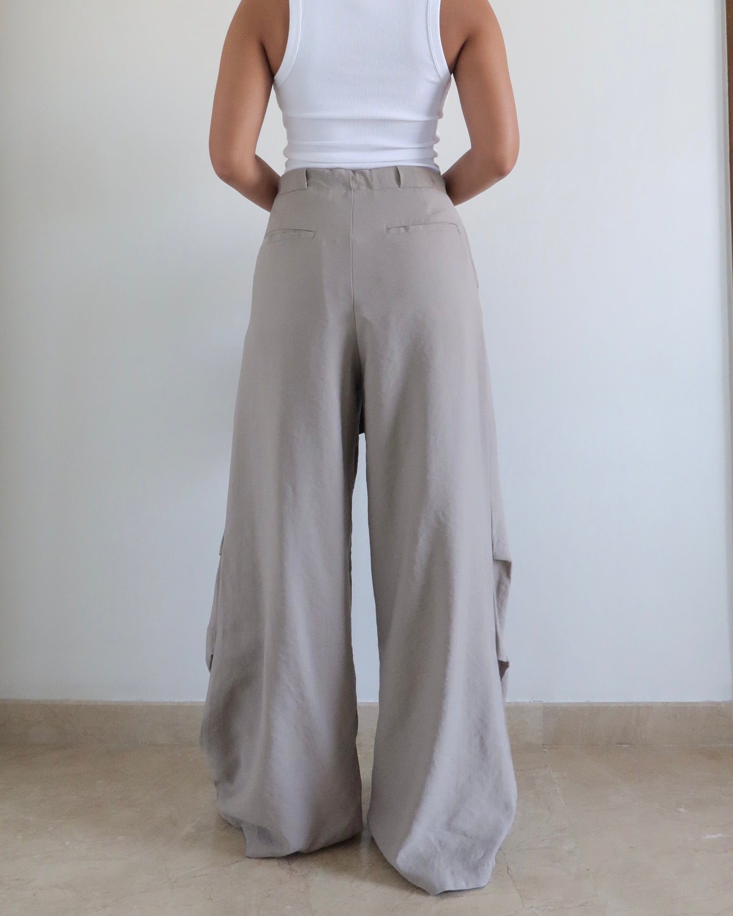 Fit: Relaxed wide-leg fit with an adjustable drawstring waist