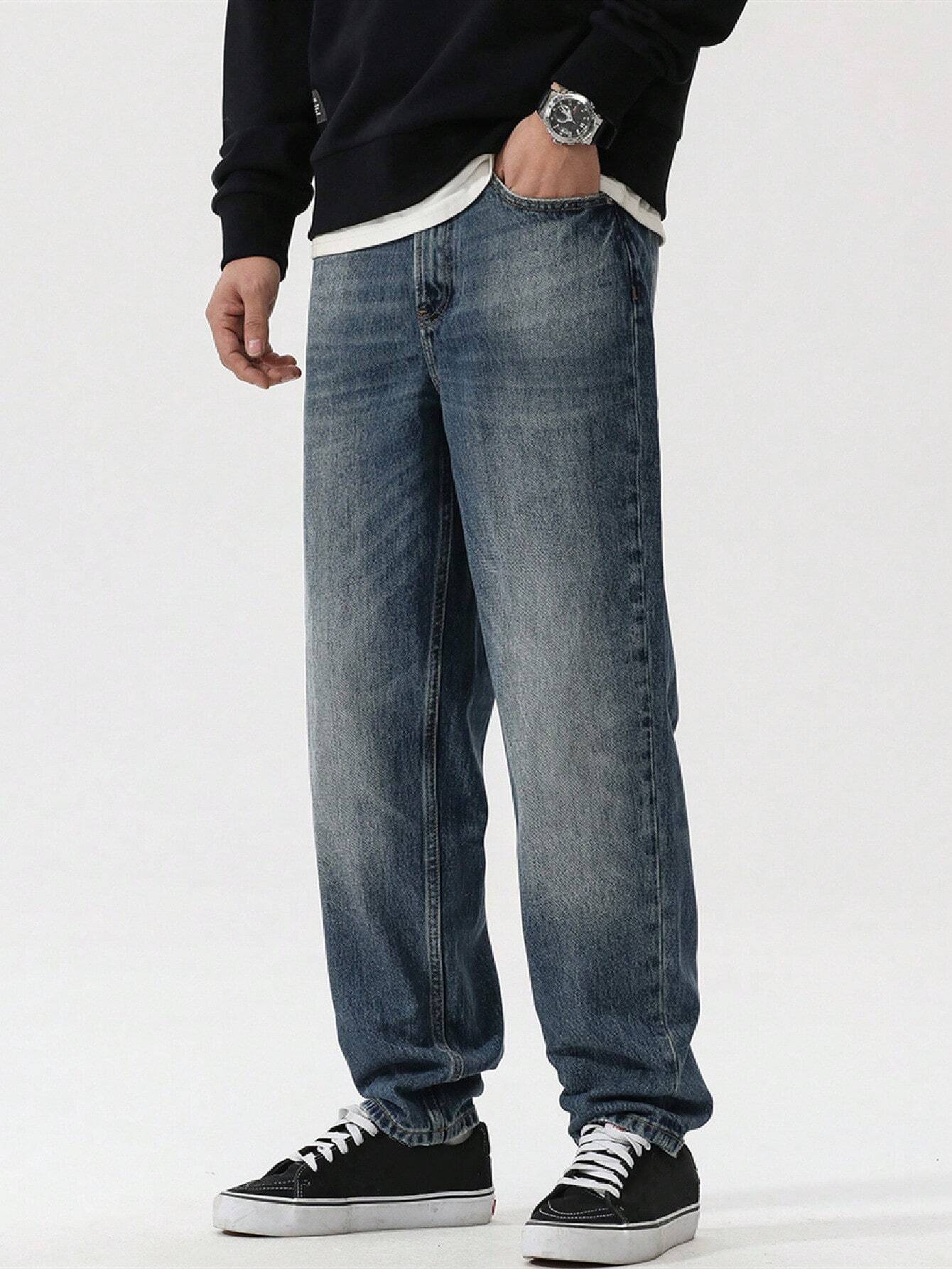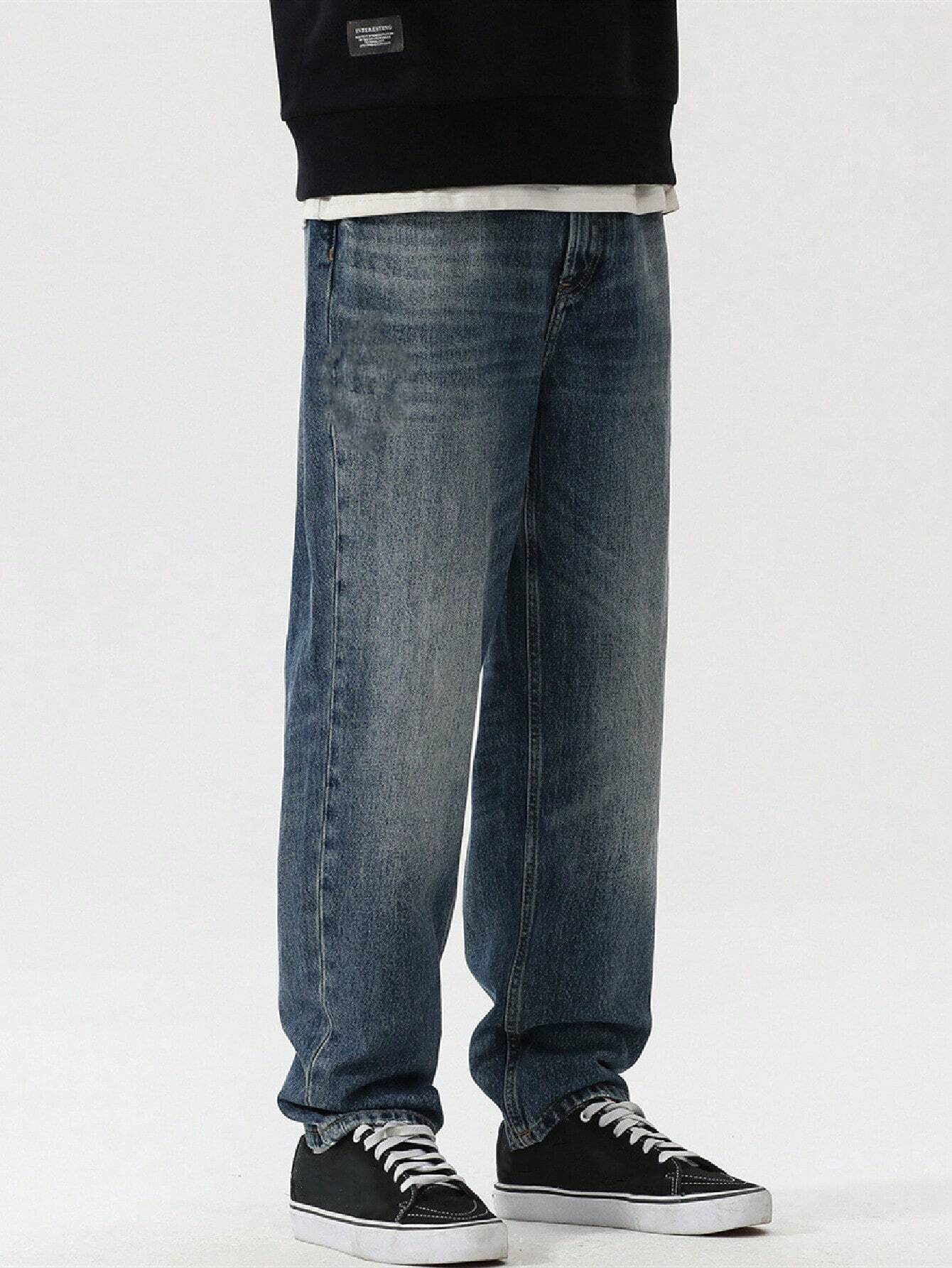 The Blue Chapter Straight Fit Jeans are a clean everyday staple with a relaxed straight-leg silhouette and an easy vintage fade. Finished in a mid-blue wash with soft whiskering and subtle thigh fading, this pair delivers that worn-in look without feeling overdone. Built in sturdy 12.5 oz denim with a classic 3/1 RHT weave, they hold their shape while breaking in beautifully over time—perfect with hoodies, oversized tees, and sneakers.