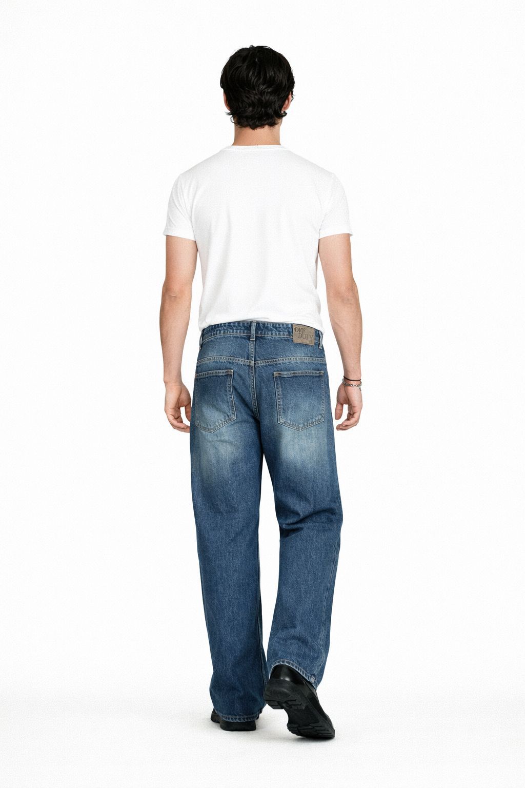 Product Name : Worn Blue Whisker Wash Loose Straight Fit Jeans