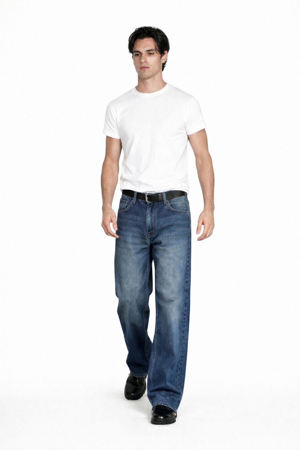 Crafted for comfort, built for street appeal—these Worn Blue jeans combine a vintage whisker wash with a loose, straight-leg silhouette. The washed-down tone and broken-in feel deliver lived-in charm, while the structured 100% cotton denim keeps the look grounded and timeless.
