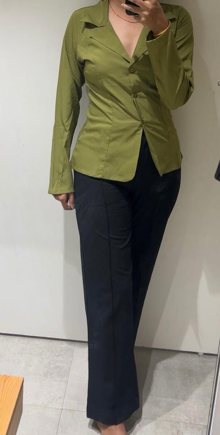 Cut with precision and designed for ease, this tailored blazer top brings timeless structure with a fluid edge. Featuring a deep neckline, sculpted seams, and a clean button closure, it strikes the balance between sharp tailoring and effortless wear.