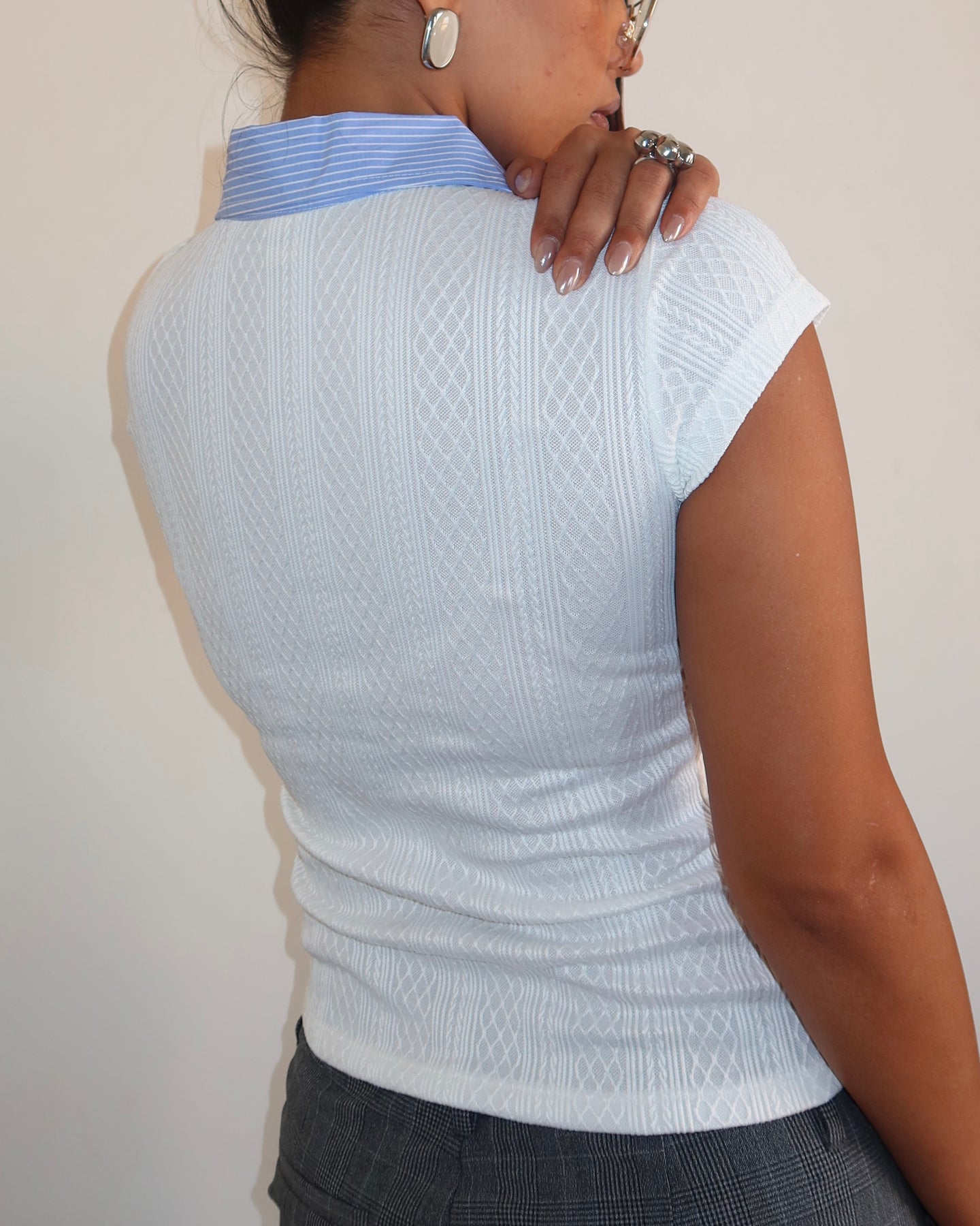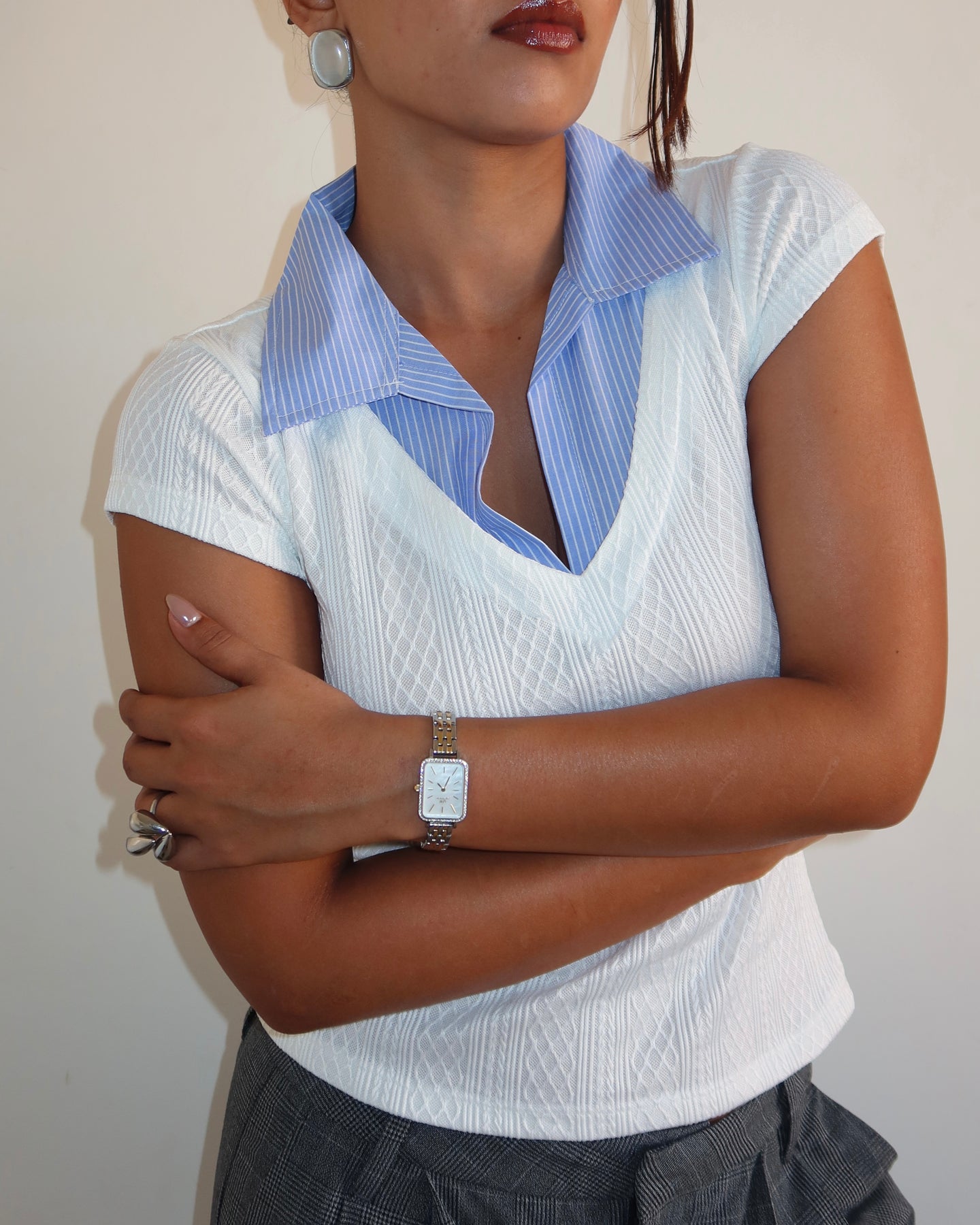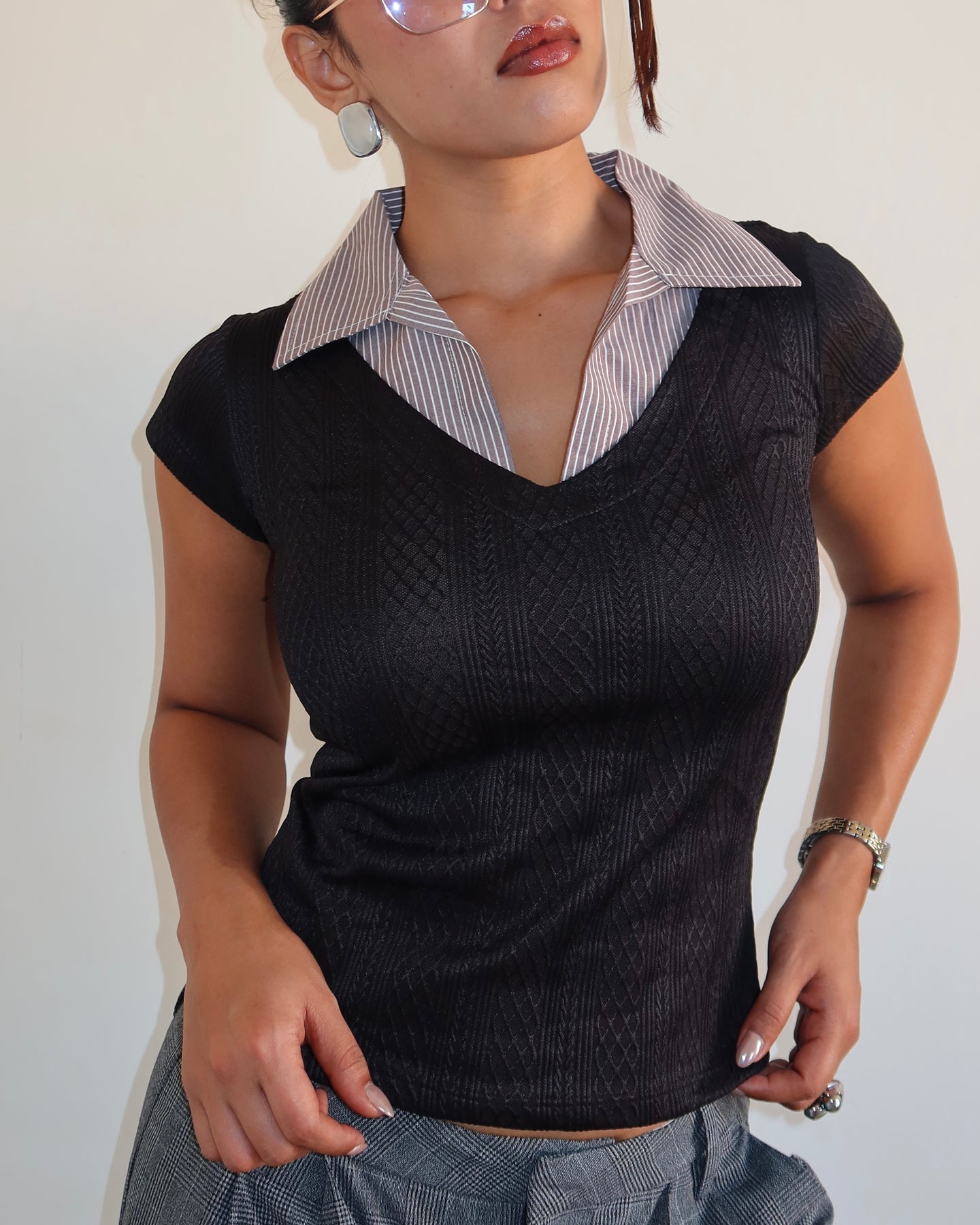 • Fit: Relaxed V-neck top with shirt-collar detailing