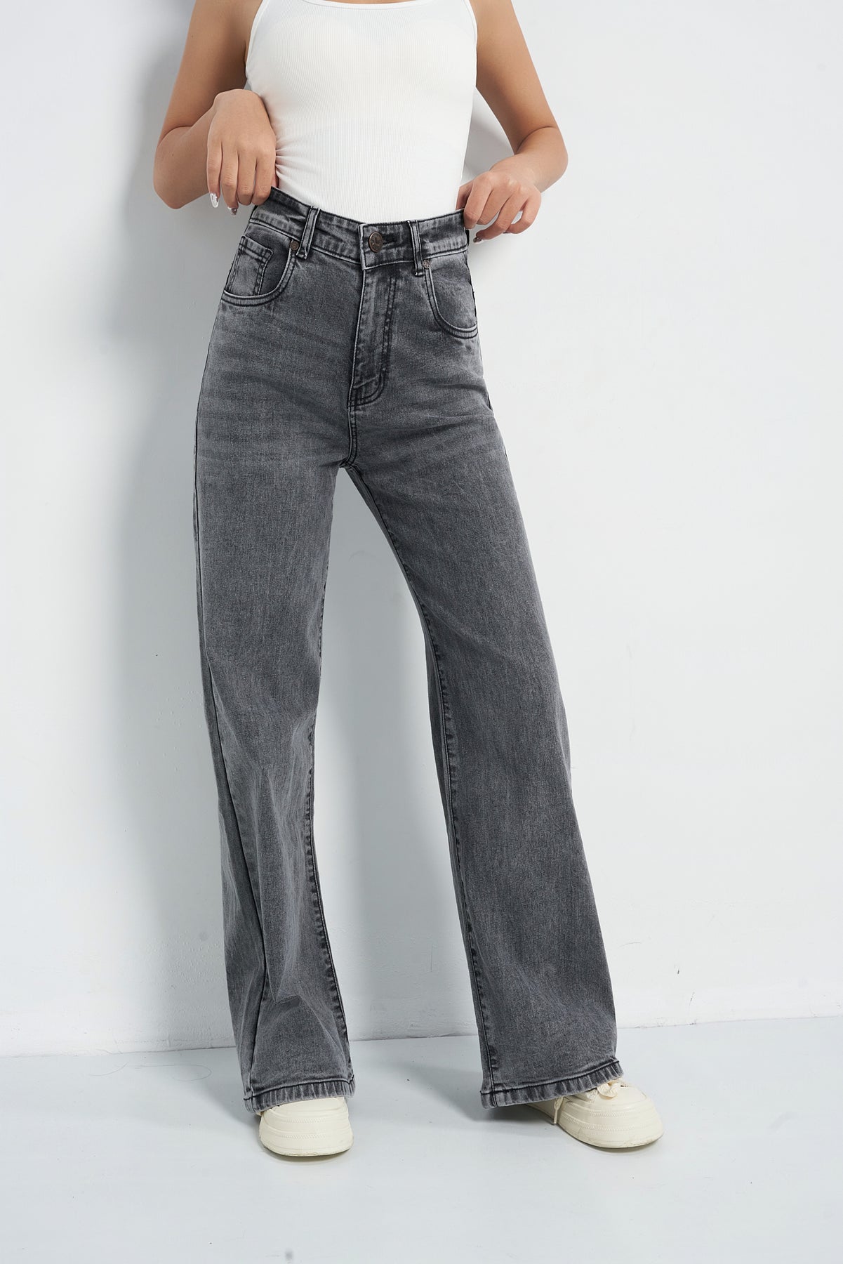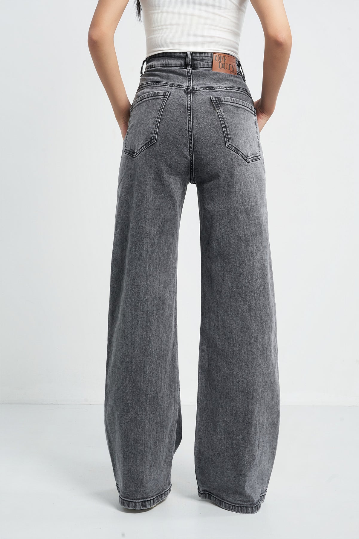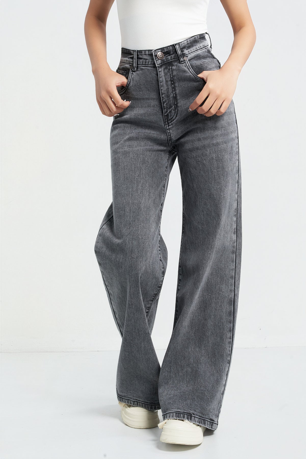 Elevate your everyday style with the Foil Grey Wide Leg High Rise Jeans. Featuring a modern wide-leg silhouette and a flattering high-rise fit, these jeans combine comfort and sophistication effortlessly. Crafted with a subtle stretch, they move with you while maintaining a structured look, making them perfect for pairing with sneakers for a casual vibe or heels for a chic finish.