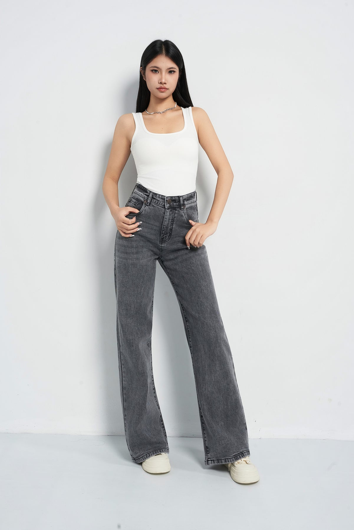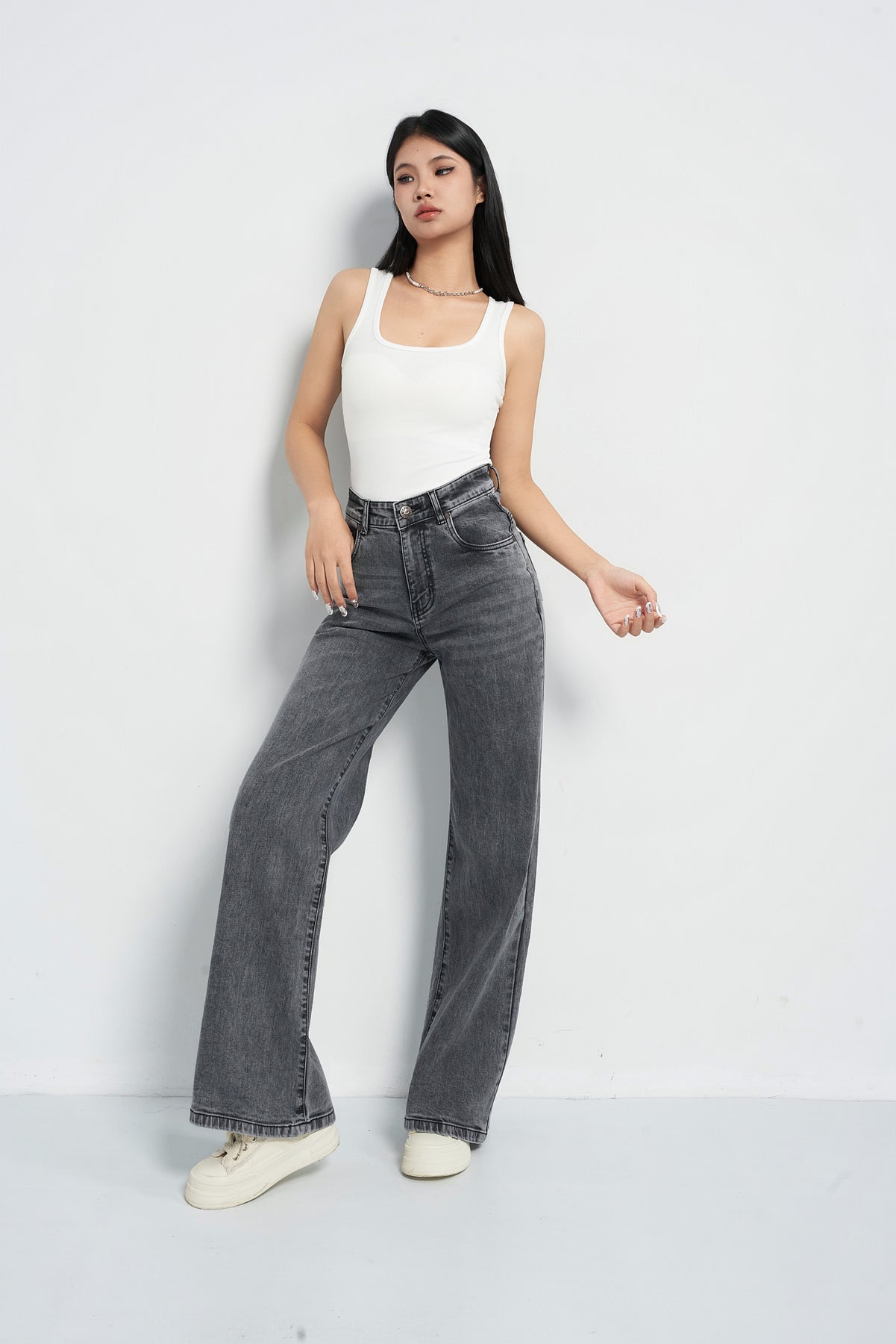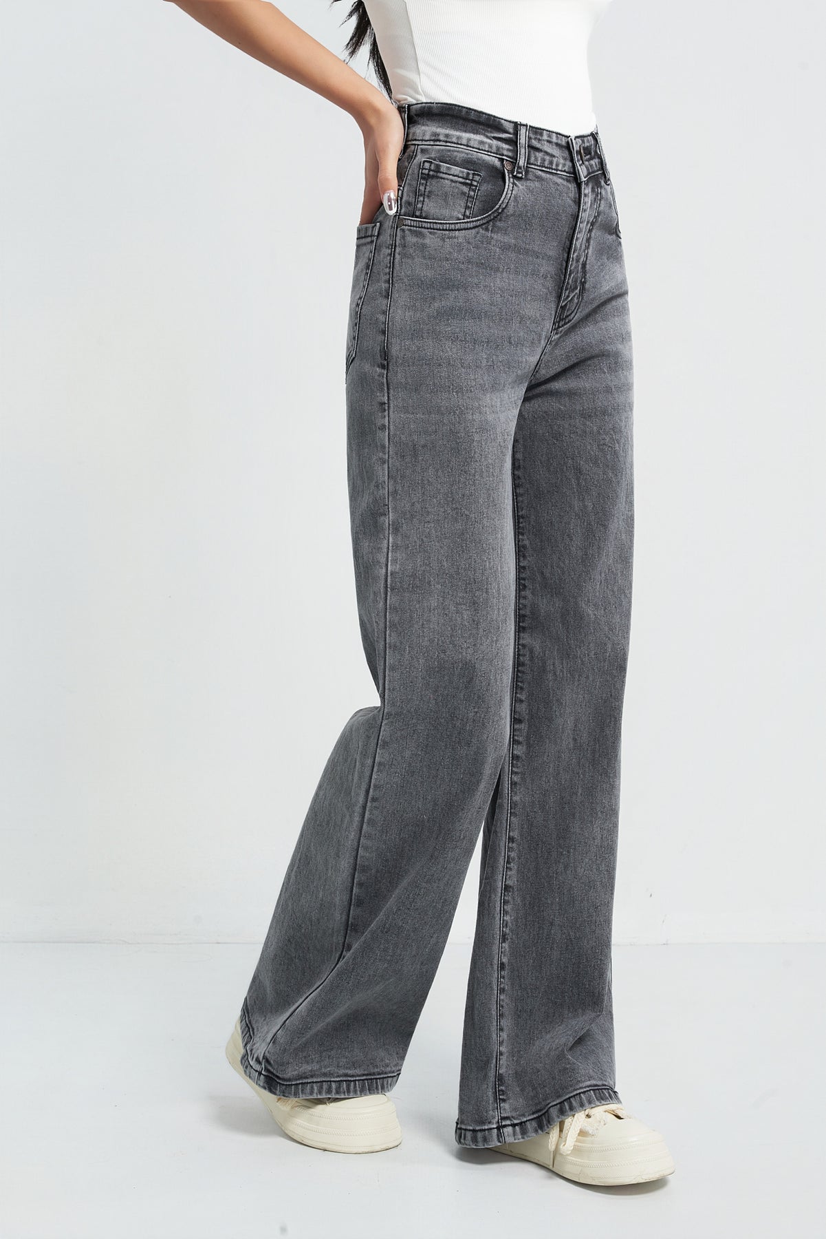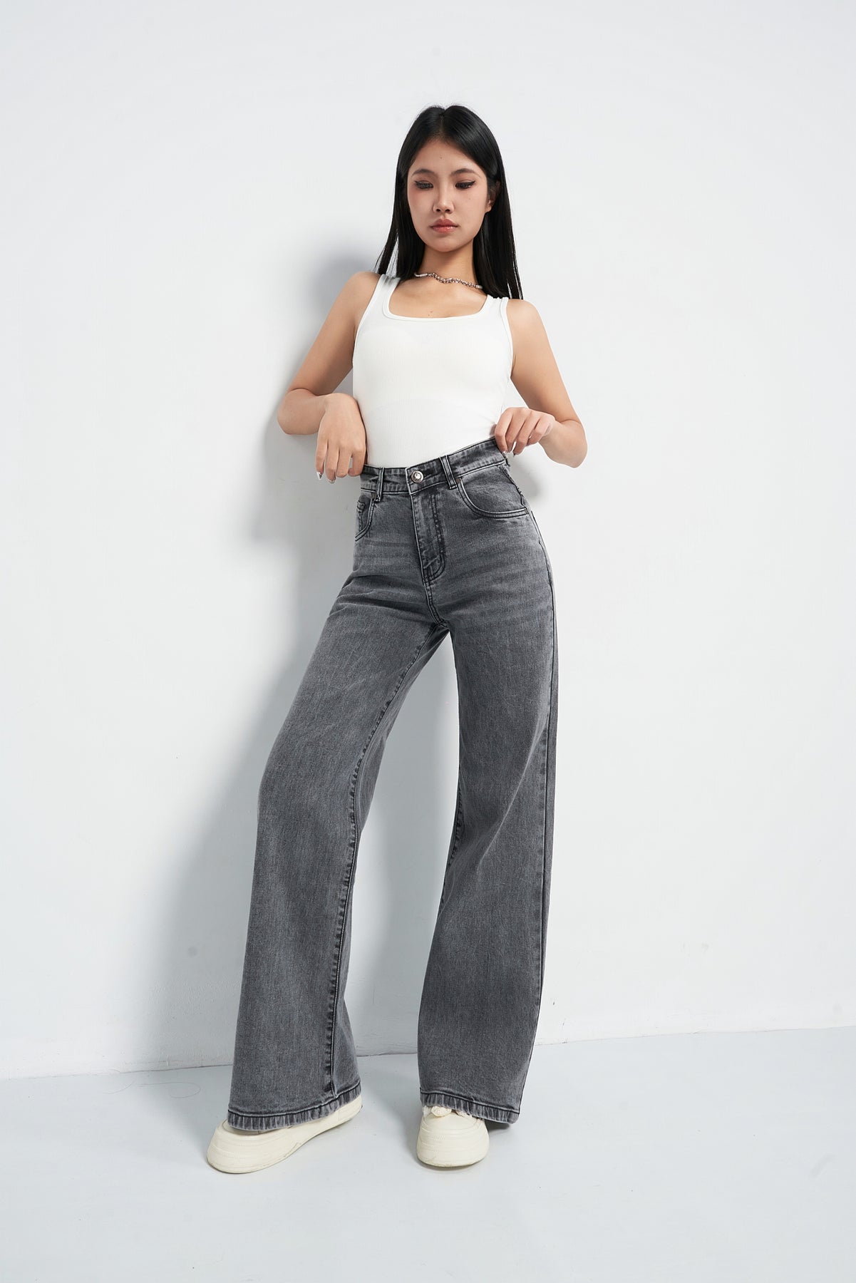 Elevate your everyday style with the Foil Grey Wide Leg High Rise Jeans. Featuring a modern wide-leg silhouette and a flattering high-rise fit, these jeans combine comfort and sophistication effortlessly. Crafted with a subtle stretch, they move with you while maintaining a structured look, making them perfect for pairing with sneakers for a casual vibe or heels for a chic finish.