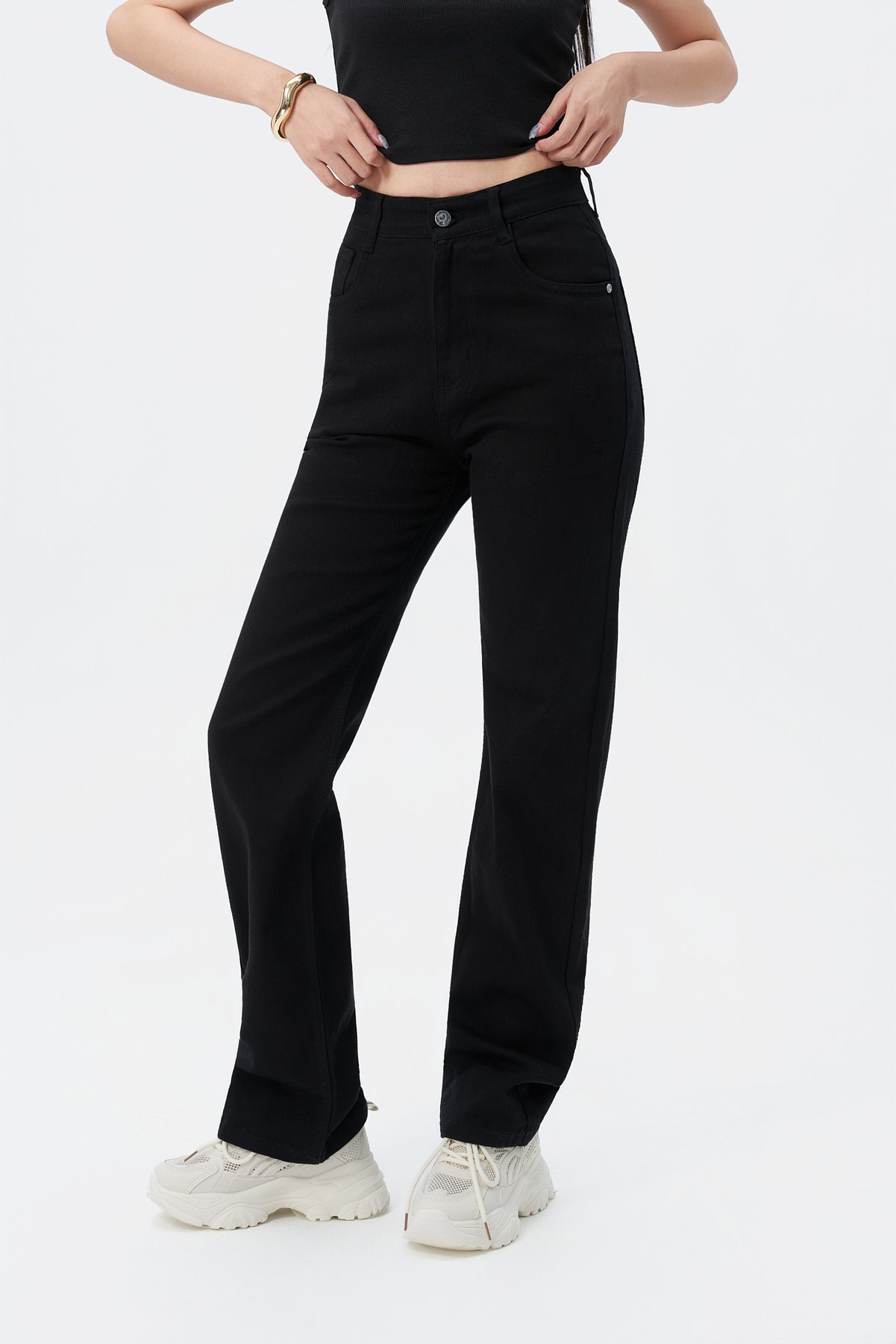 • Style: Super high-rise straight-leg denim