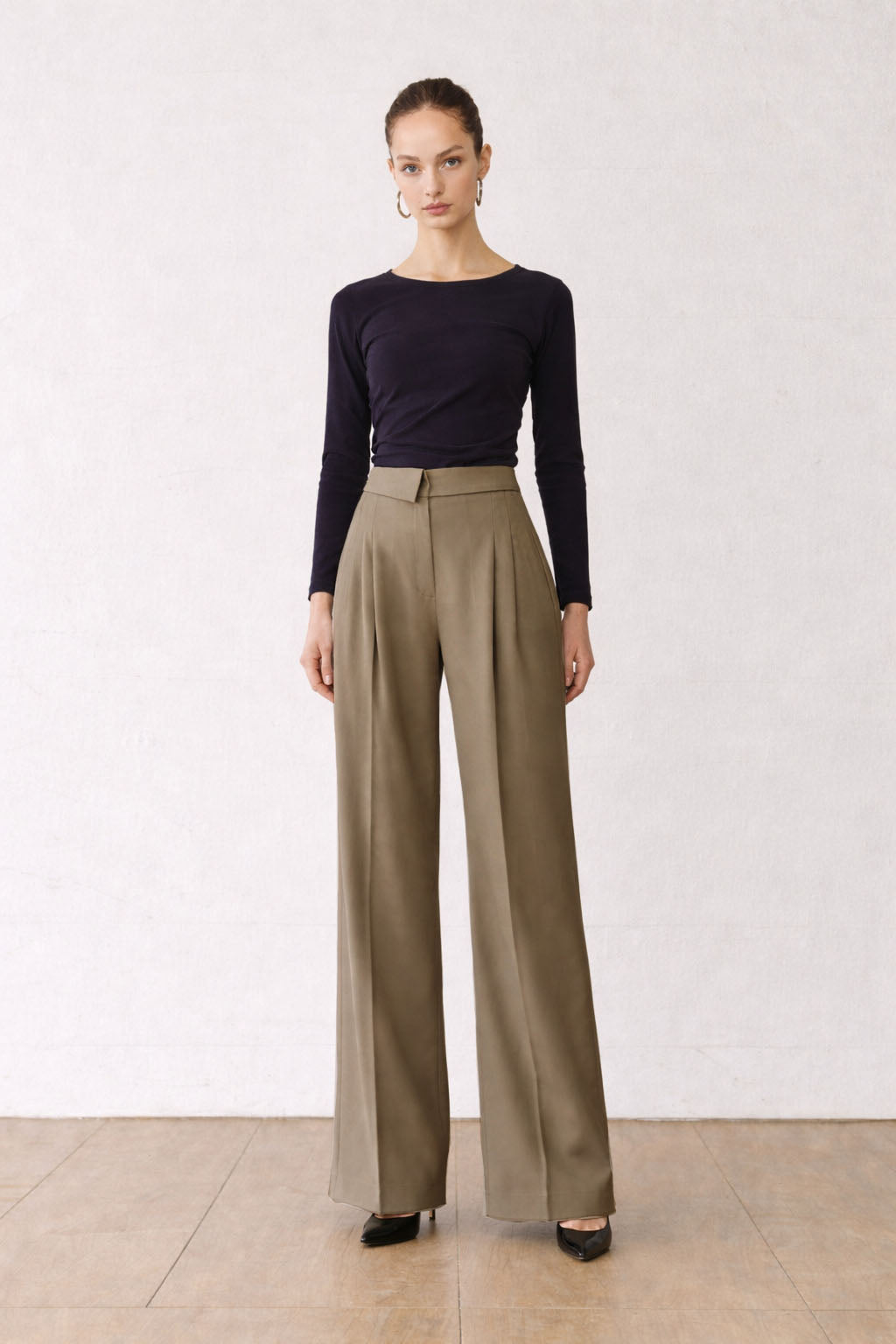 Product Name : Clean Collar Waist Pleated Trousers