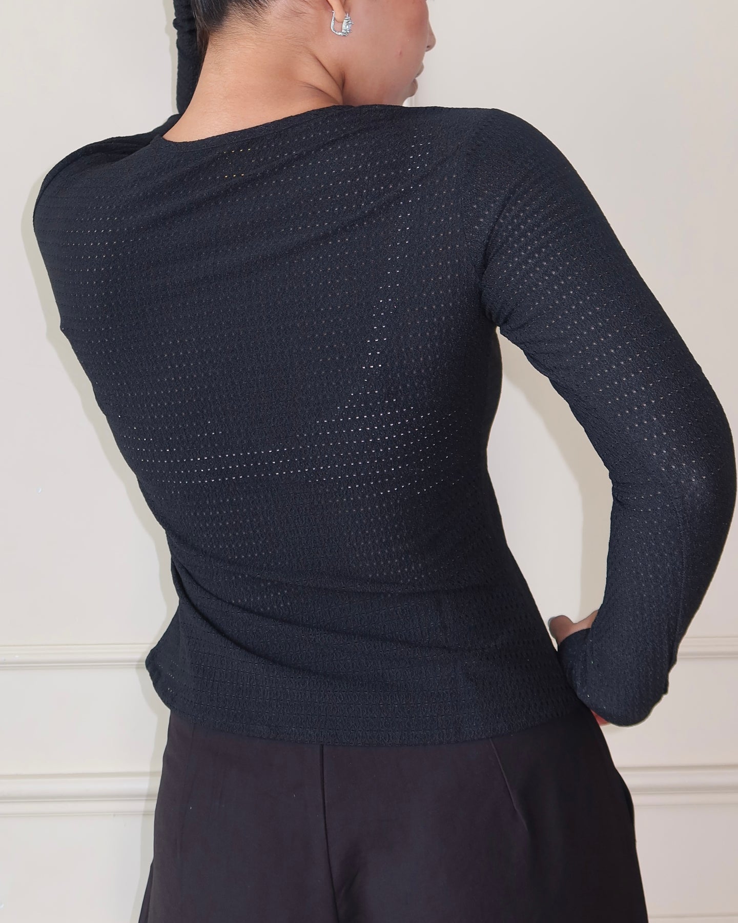 • Styling Tip: Tuck into high-rise trousers for sleek tailoring or wear with jeans for an elevated off-duty look.