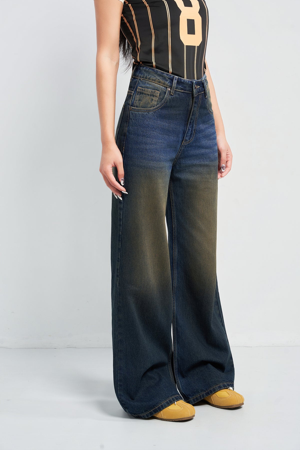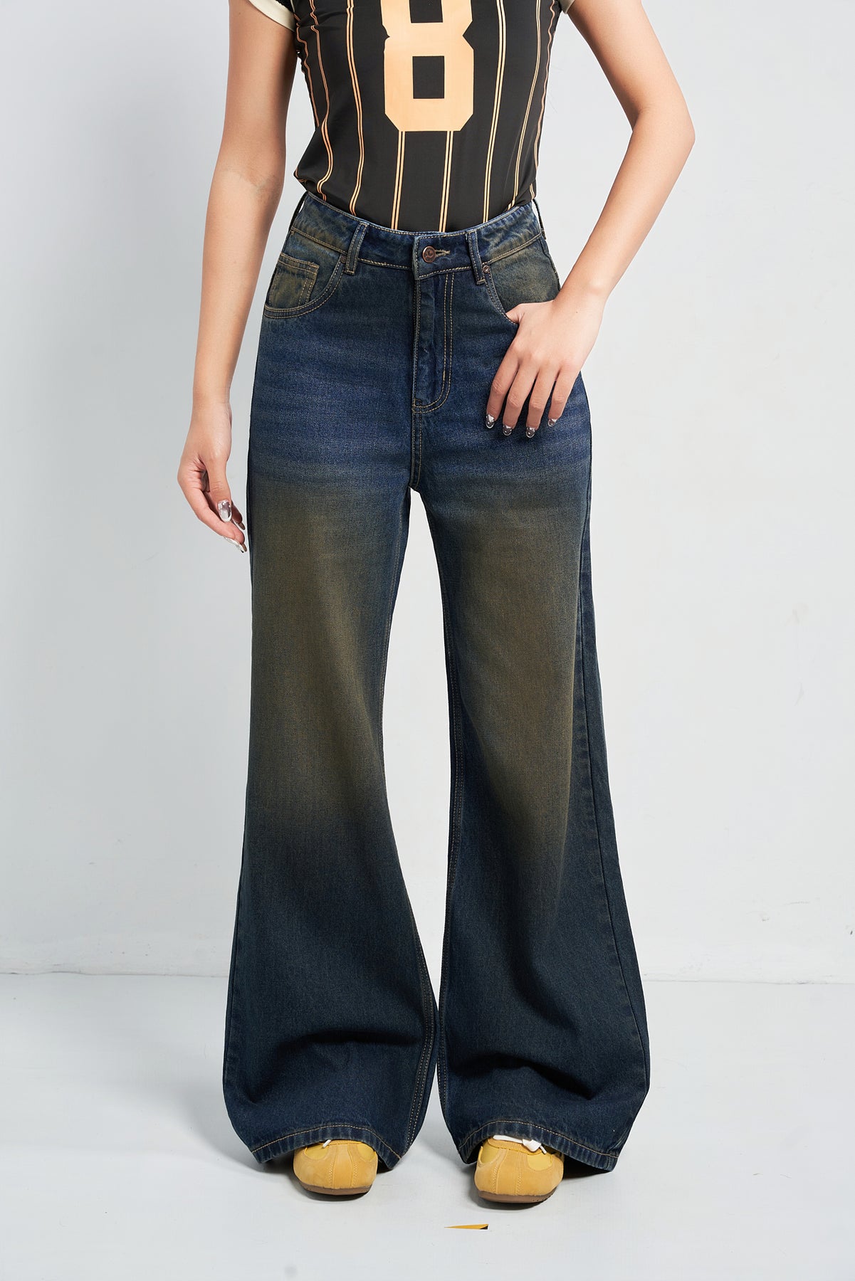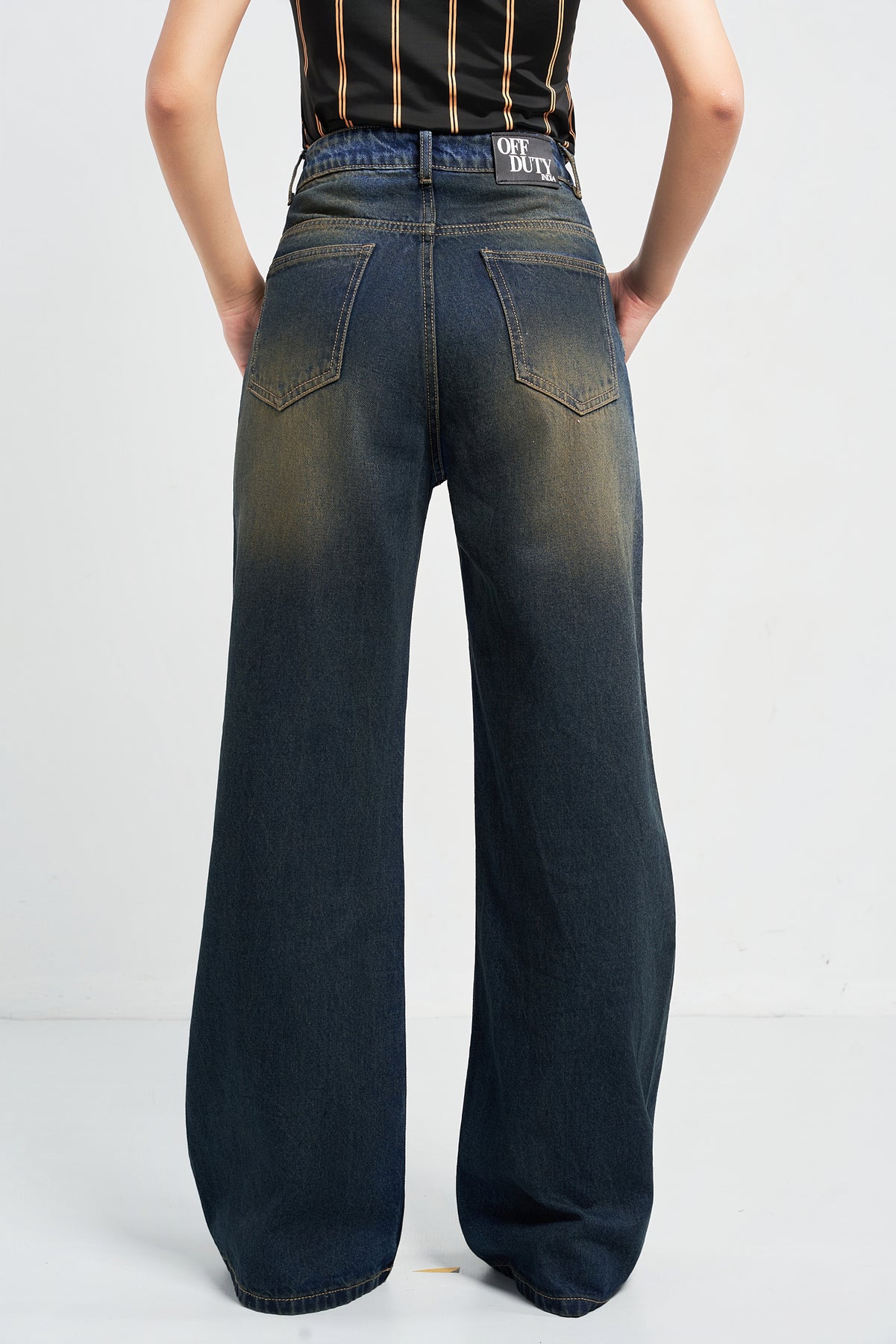 The Golden Fade Wide Leg Jeans combine a laid-back silhouette with a vintage-inspired wash. Featuring a roomy wide-leg cut and a sun-tinted faded blue finish, they bring effortless retro charm with modern wearability.