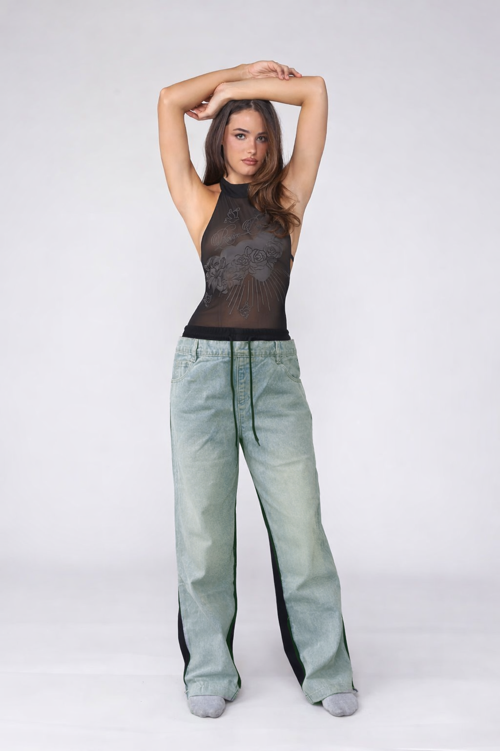 The So Loose Boxer Denim Joggers fuse denim attitude with lounge-level comfort, built around a relaxed, wide-leg silhouette and an easy pull-on waistband. Featuring a light-wash denim front with contrast side panels and a boxer-style elastic waist detail, this pair brings a clean streetwear edge while staying effortless to wear. Finished with a soft, vintage fade and full-length drape, they’re made for oversized tees, cropped layers, and chunky sneakers.