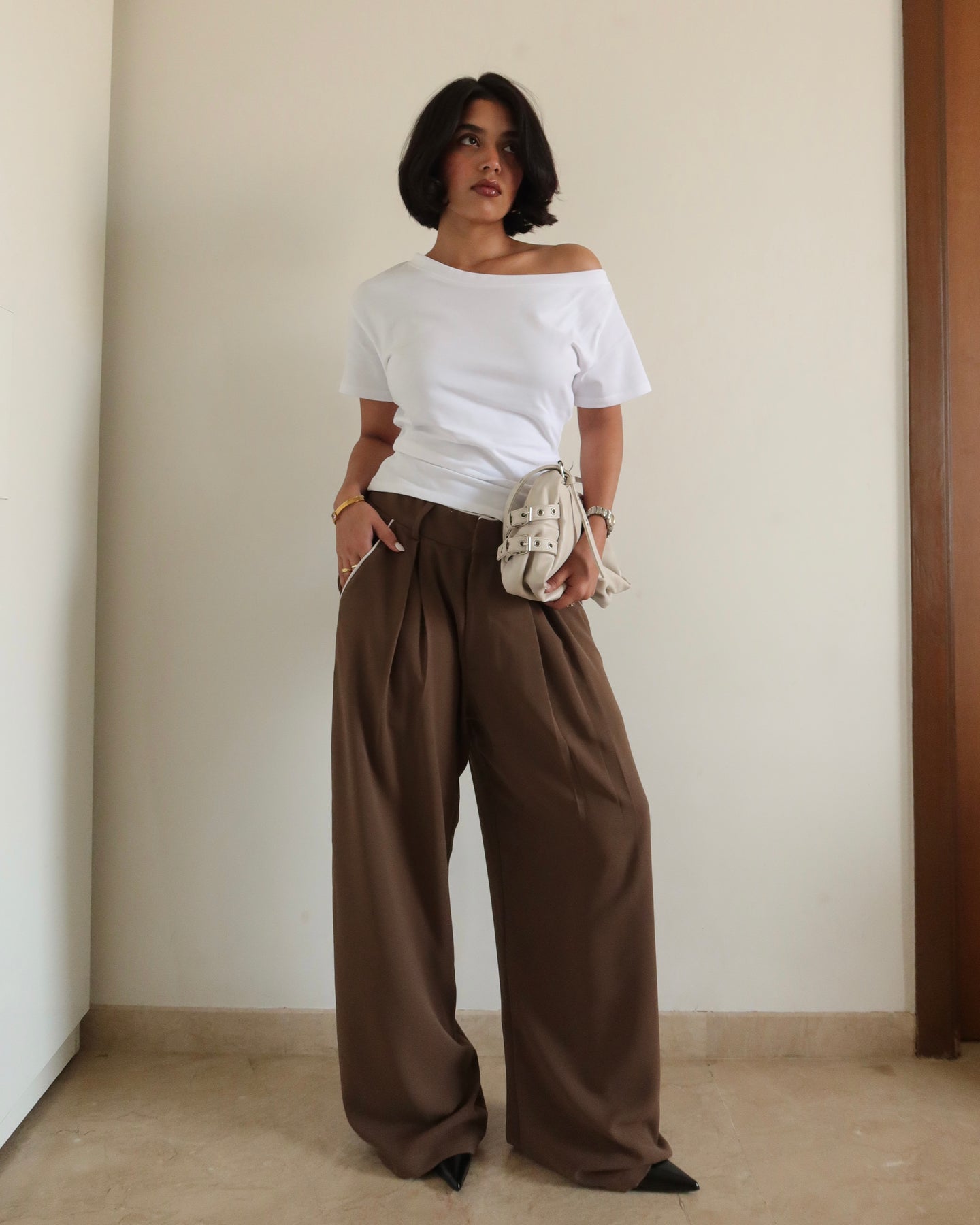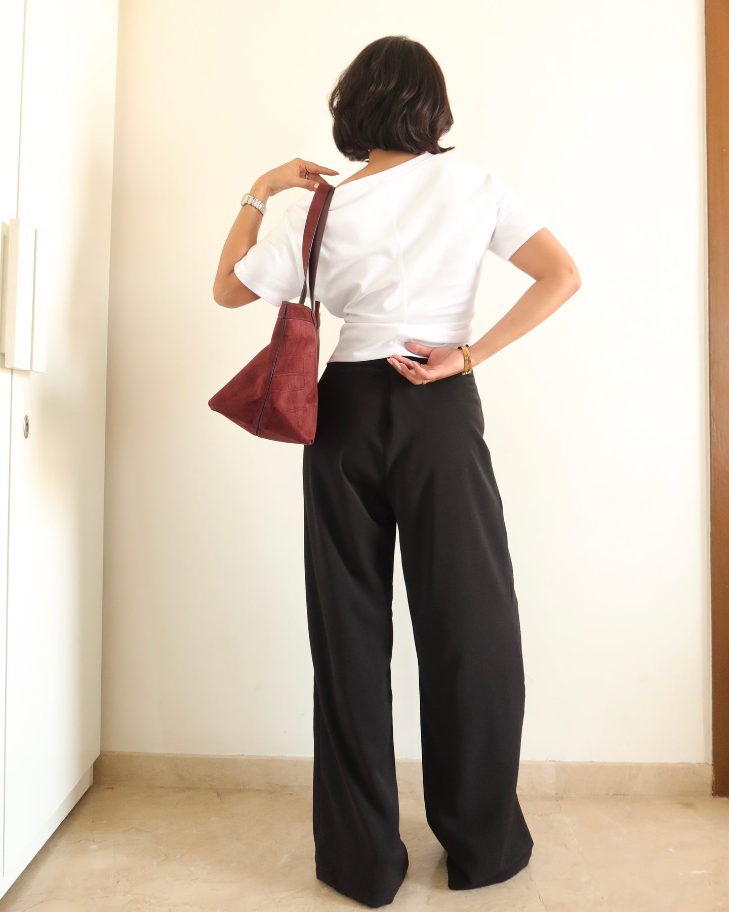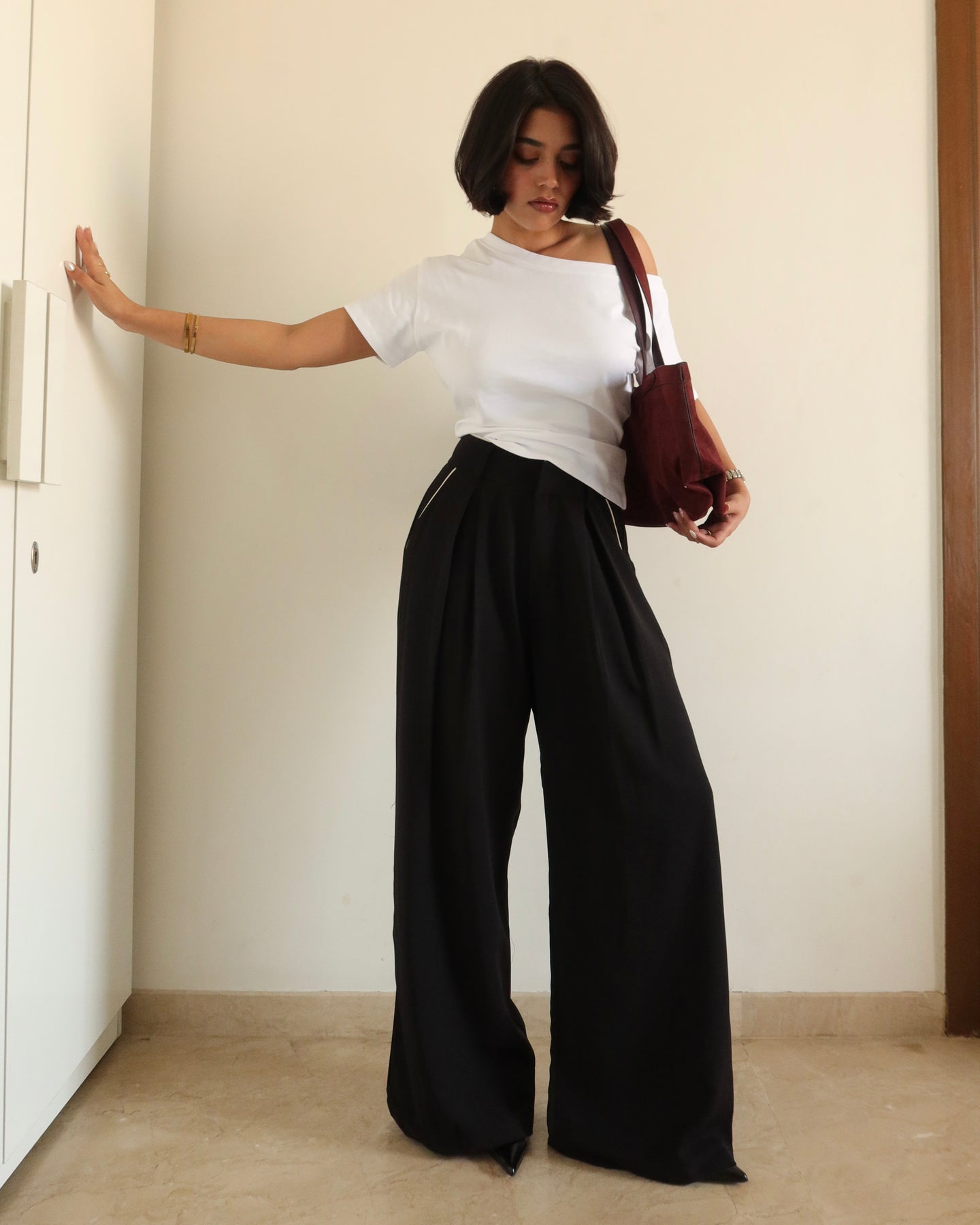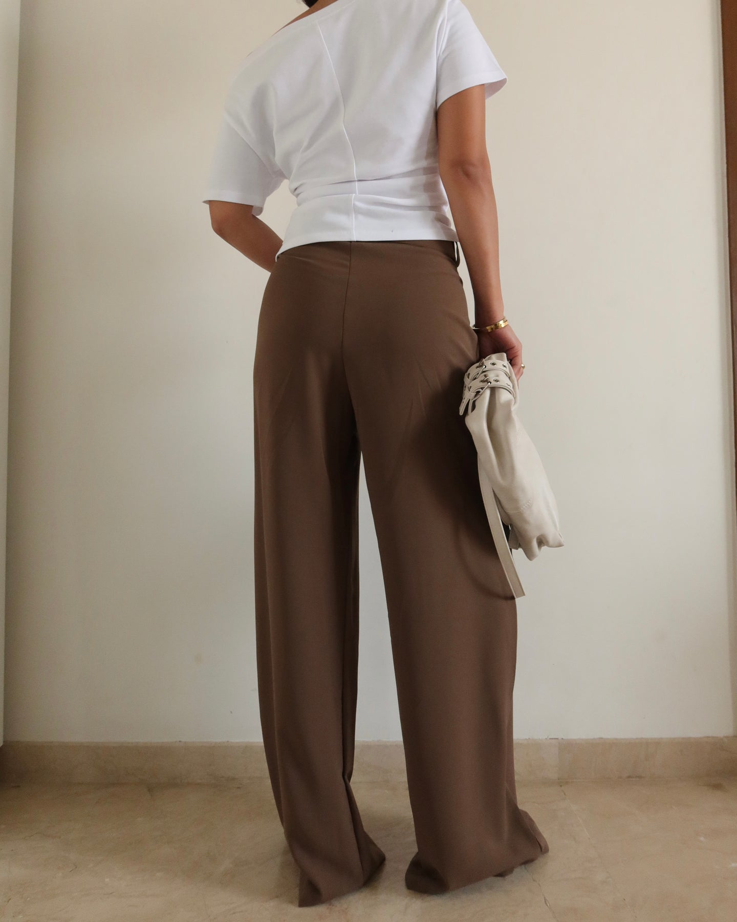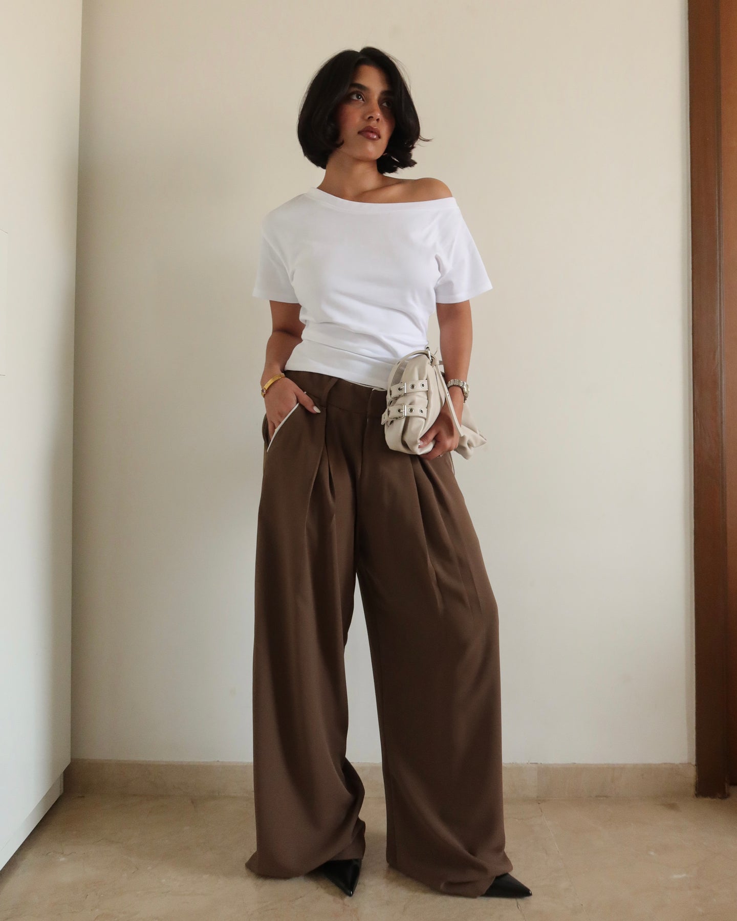 The Outline Pleats Pants — Women blend refined tailoring with modern minimalism. Designed with clean front pleats and contrast piping, they offer a sophisticated yet understated statement.