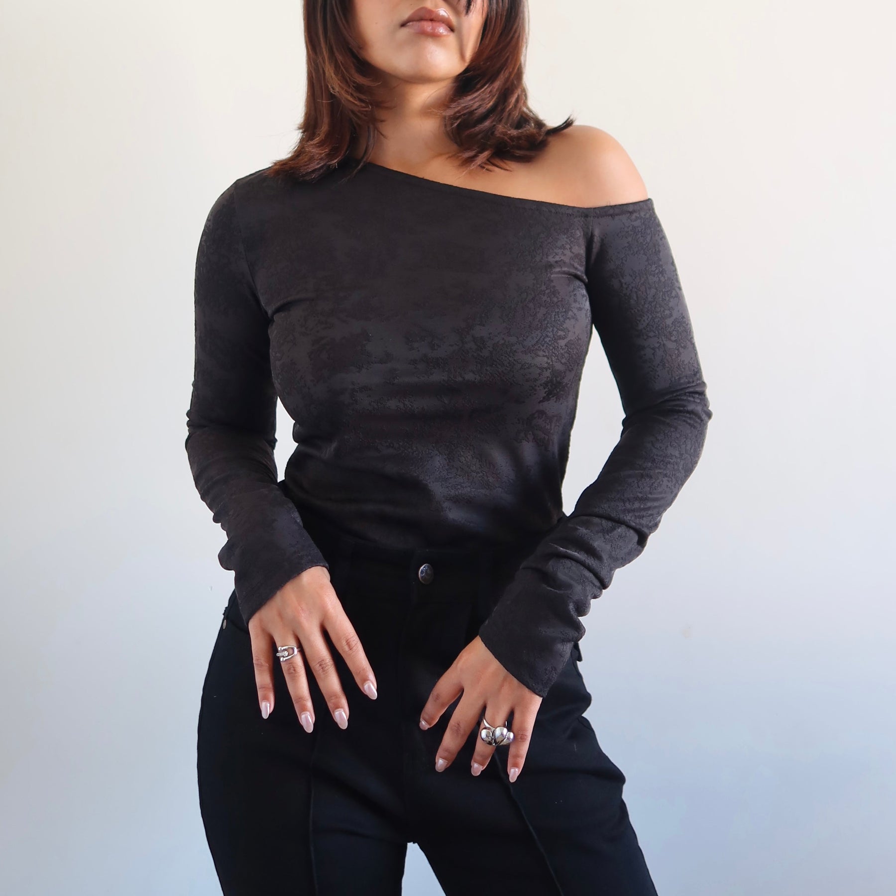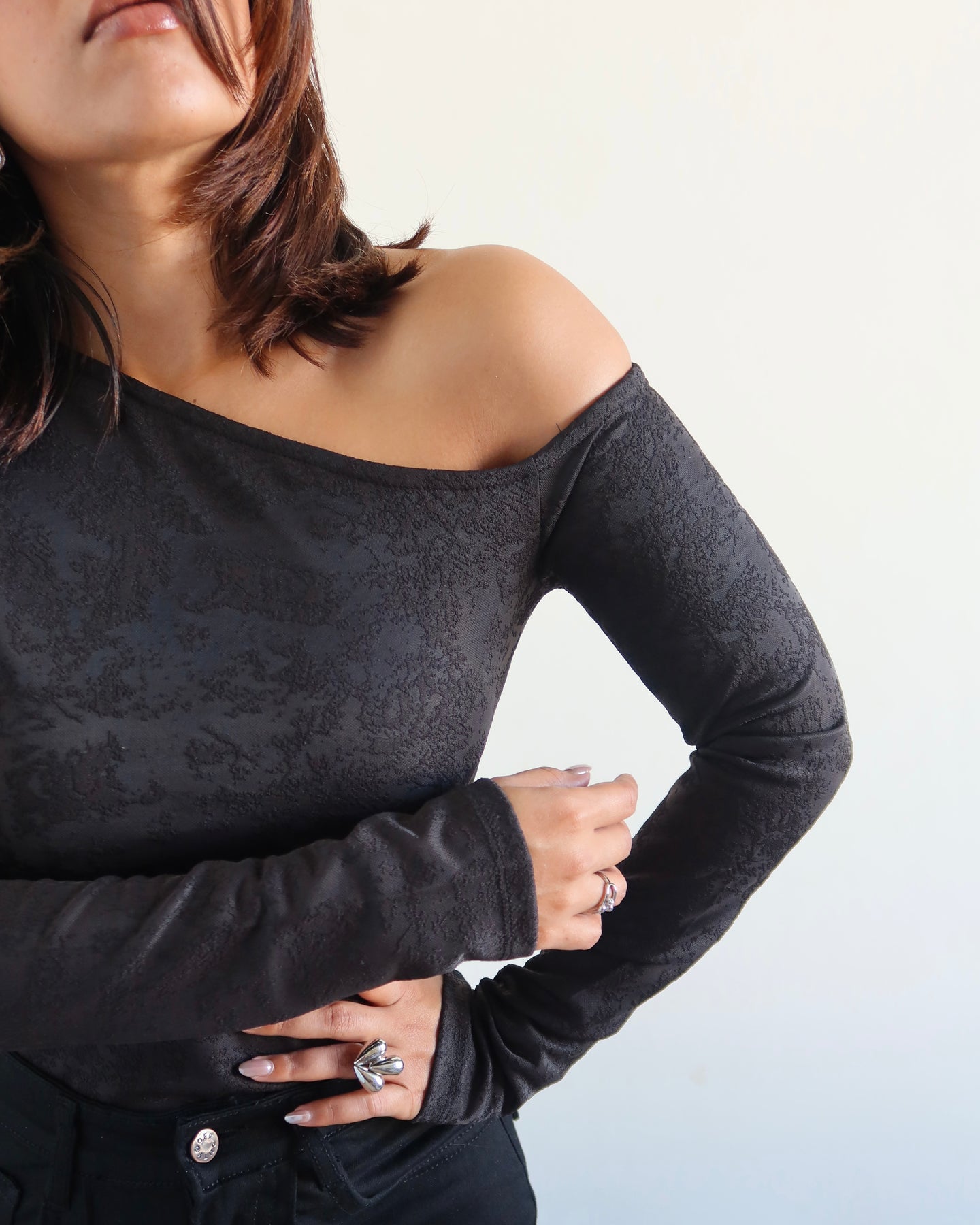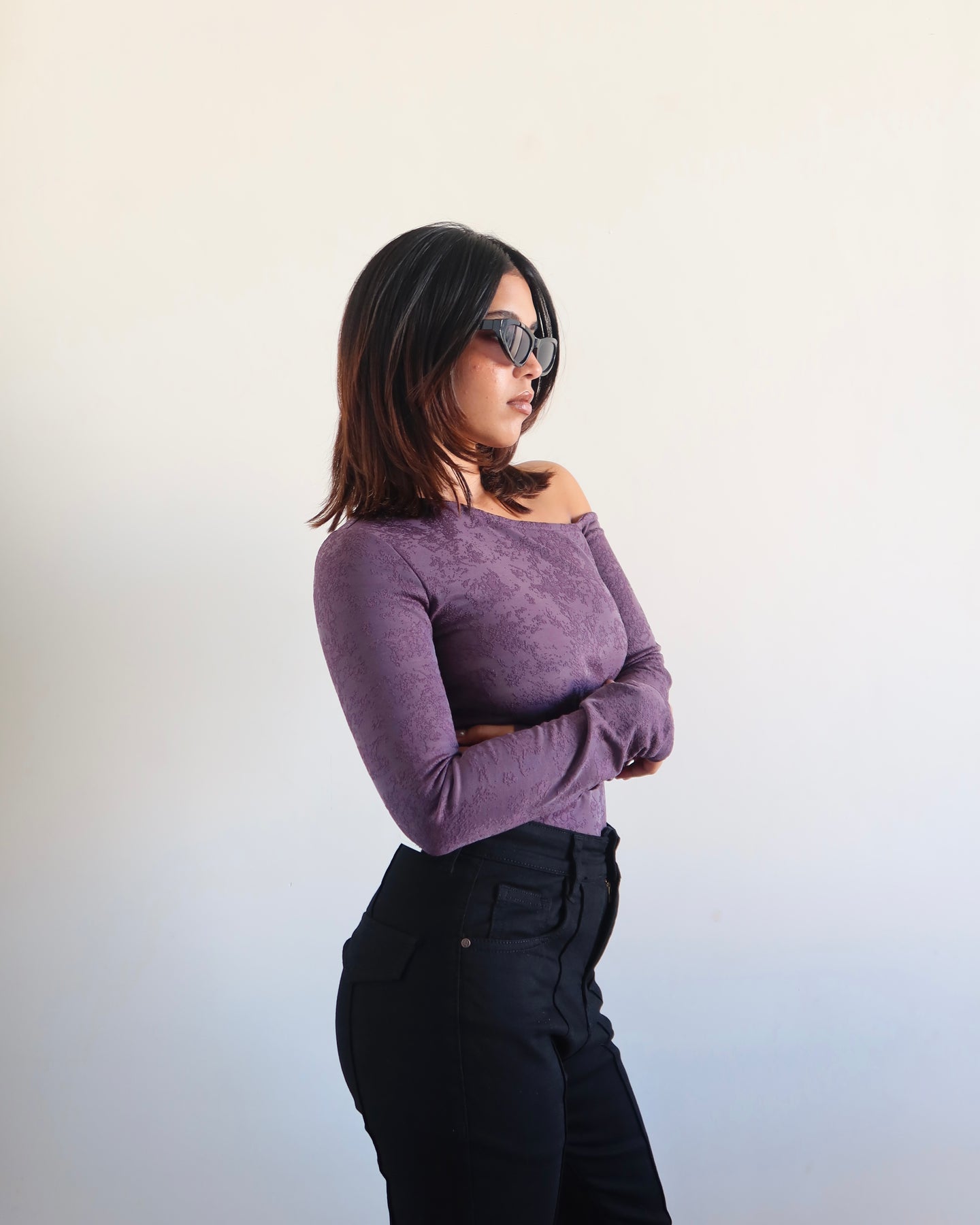 This Petal Mesh Drop-Shoulder Fitted Top brings soft structure with a touch of allure. Crafted in ultra-fine sheer mesh,