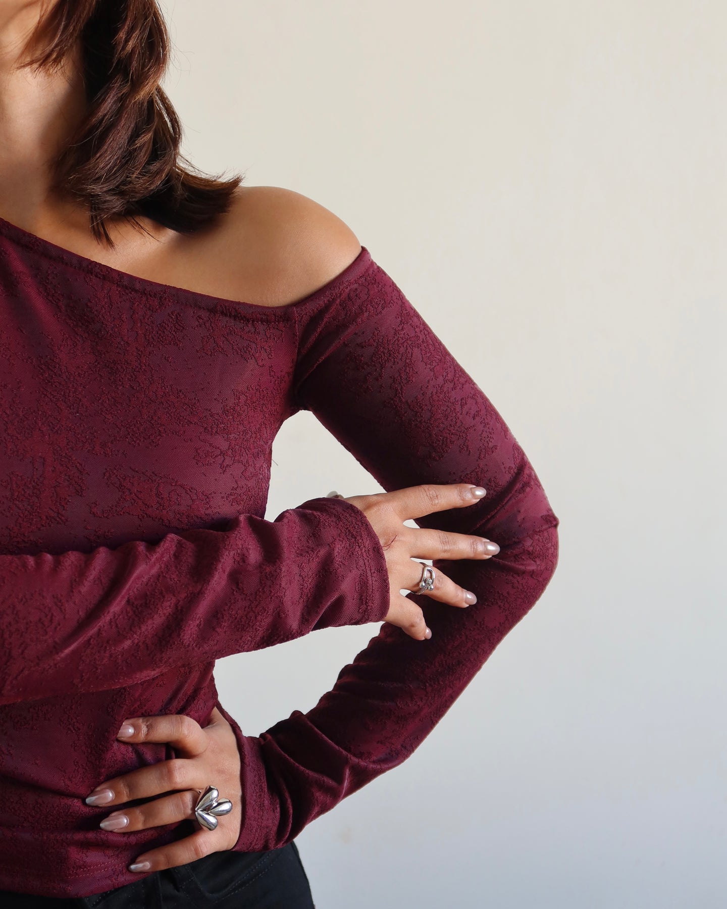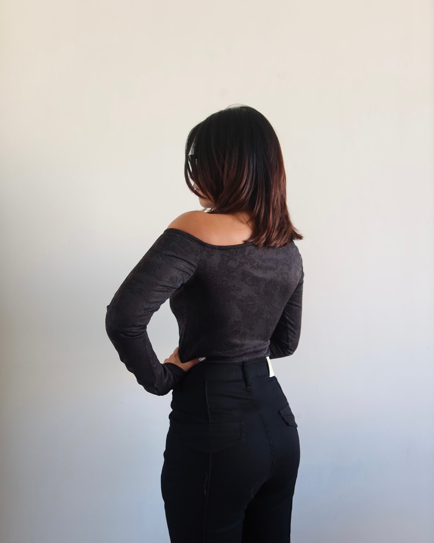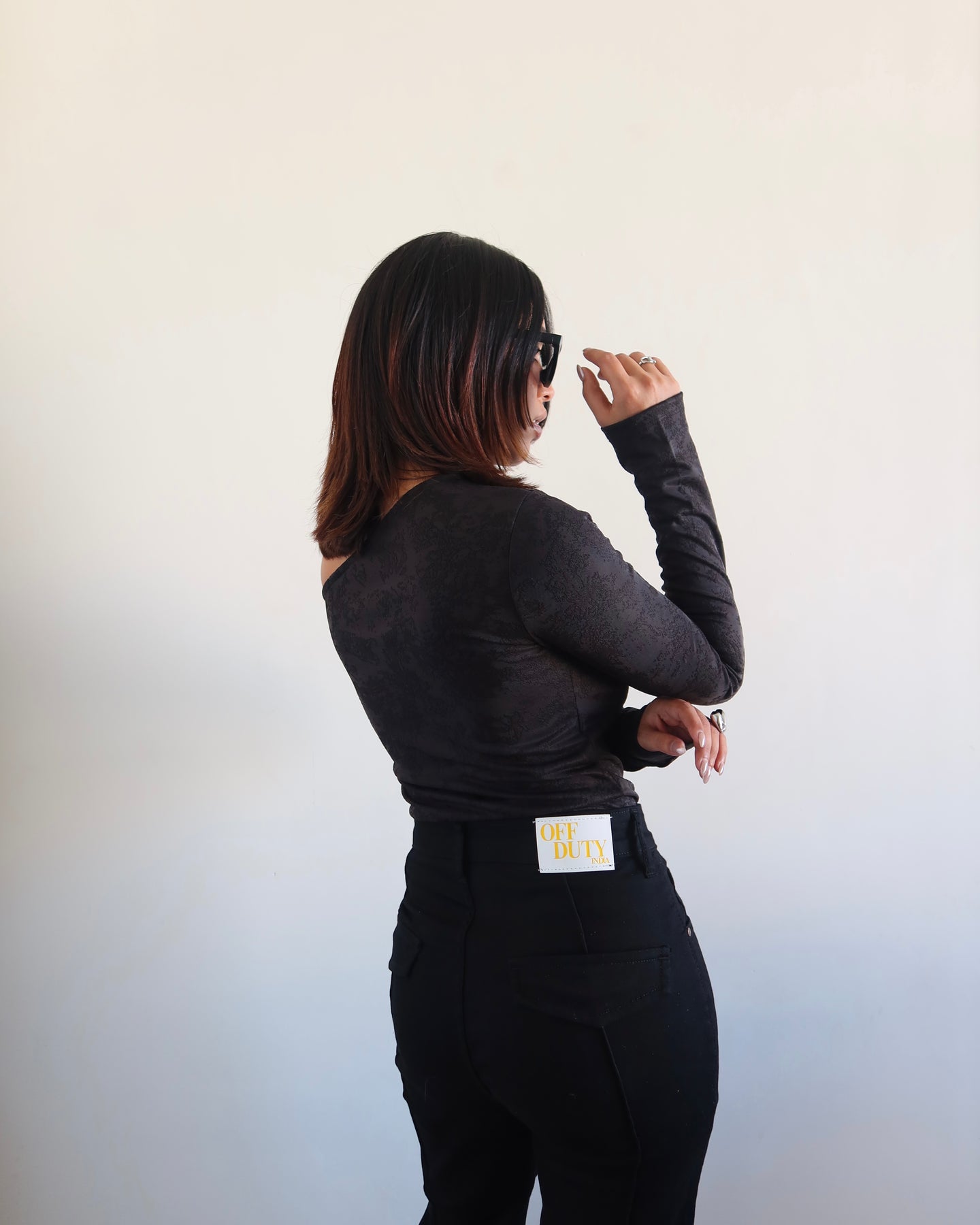This Petal Mesh Drop-Shoulder Fitted Top brings soft structure with a touch of allure. Crafted in ultra-fine sheer mesh,