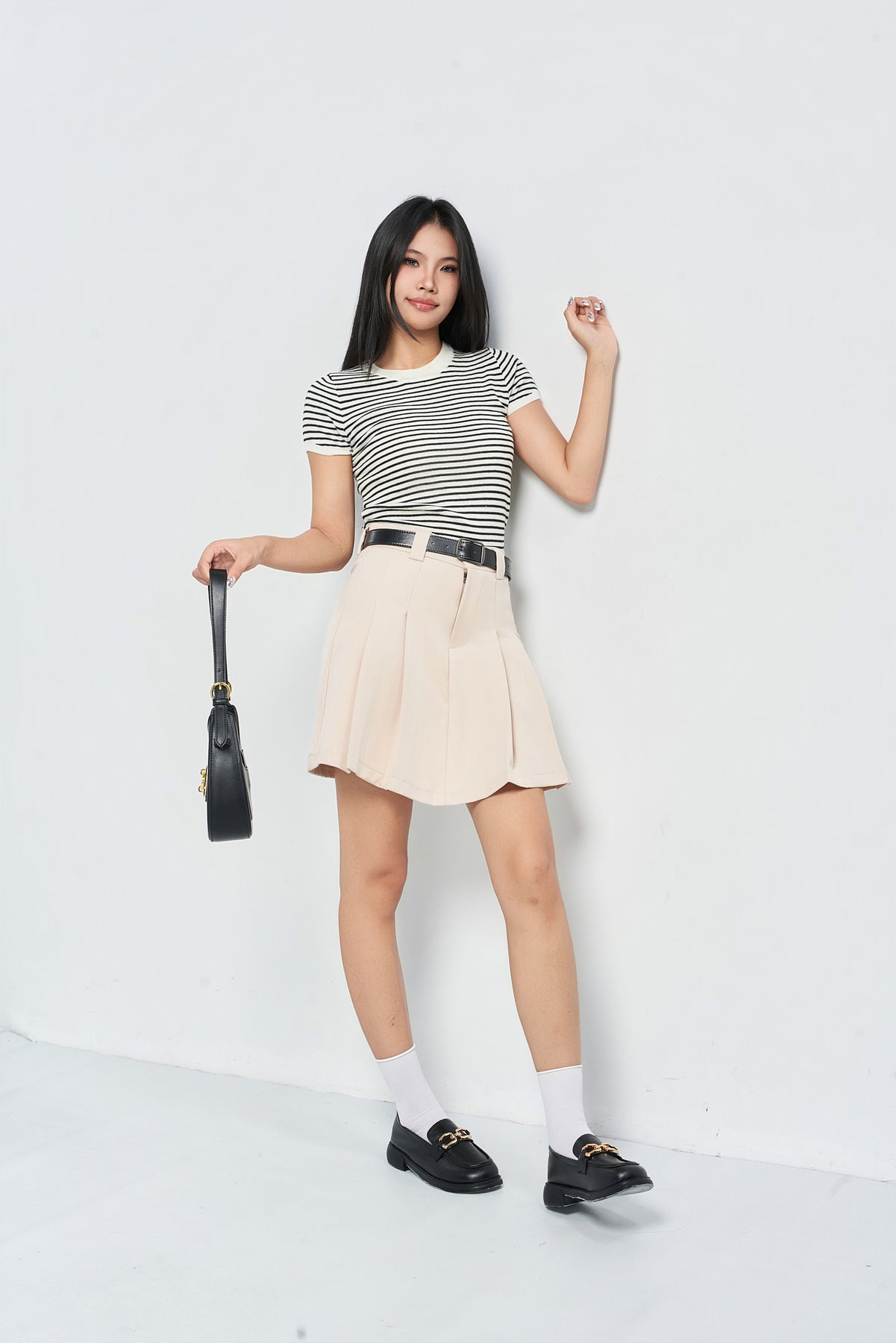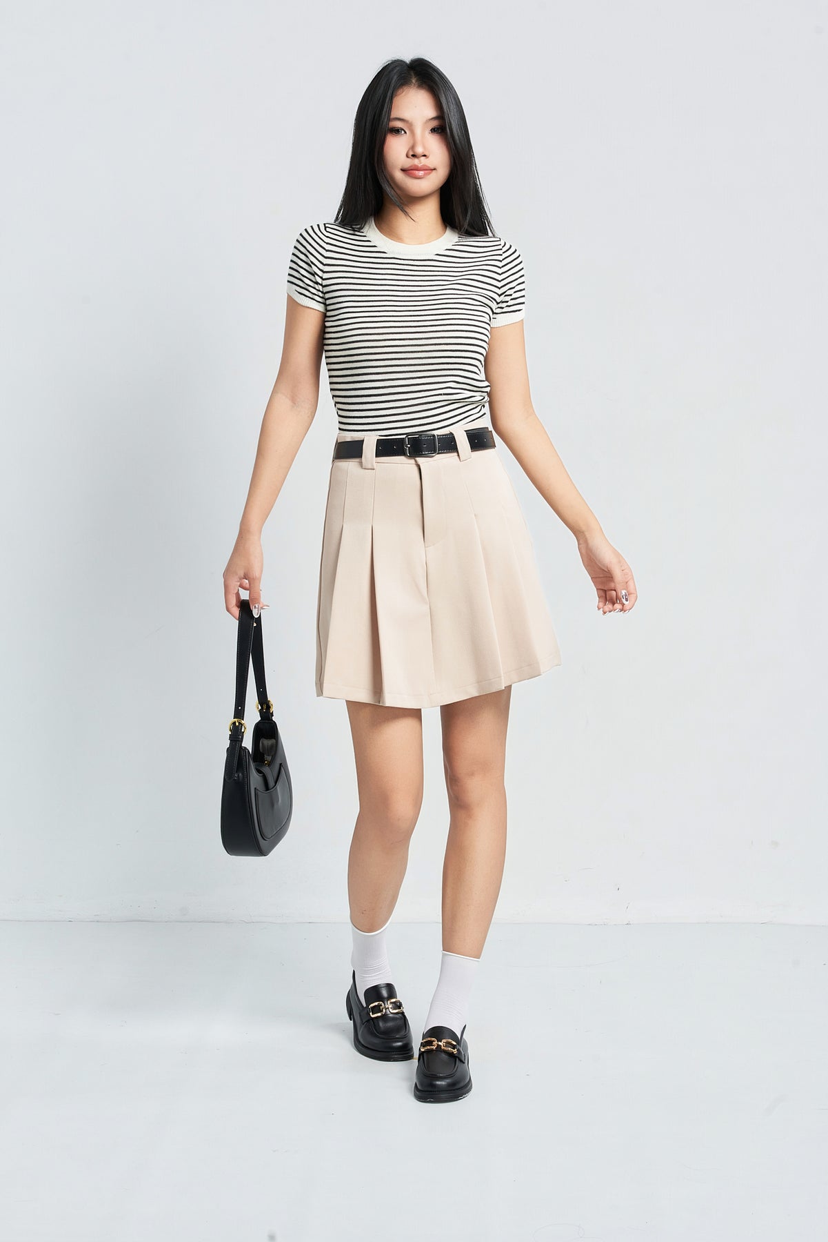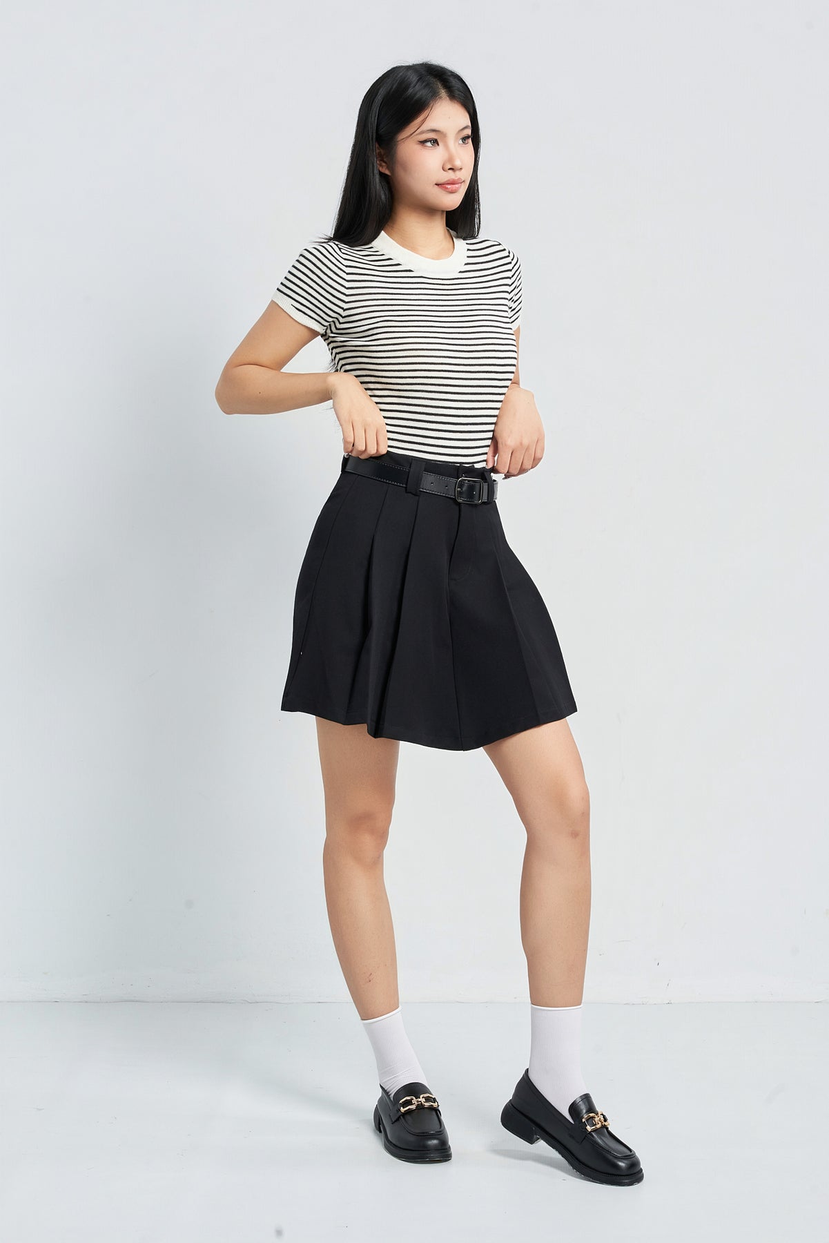 Bring movement and flair to your wardrobe with this mini skort, designed with front pleat detailing for a feminine, dynamic silhouette. Combining the ease of shorts with the elegance of a skirt, it offers versatility for both casual and polished looks. Crafted from Boston FlexTwill, it provides a soft, structured feel with mid-weight drape and stretch for all-day comfort.