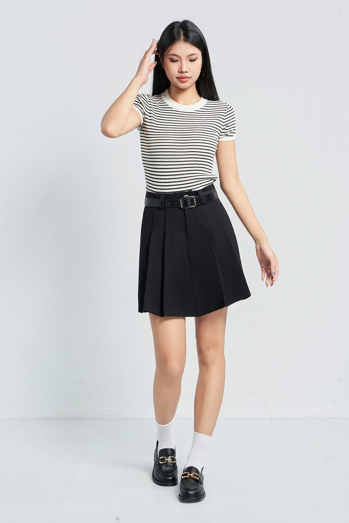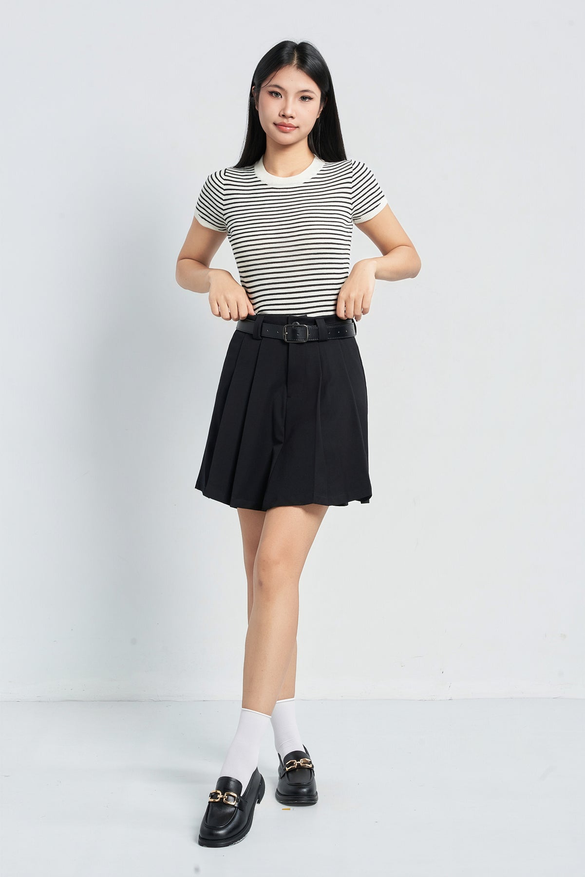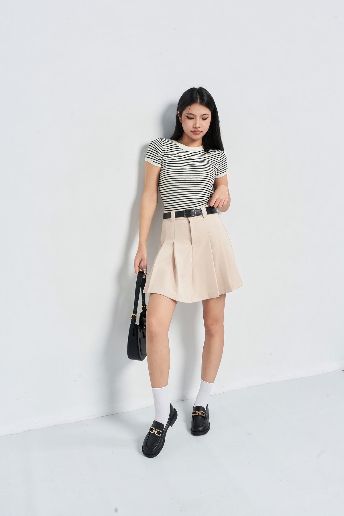 Bring movement and flair to your wardrobe with this mini skort, designed with front pleat detailing for a feminine, dynamic silhouette. Combining the ease of shorts with the elegance of a skirt, it offers versatility for both casual and polished looks. Crafted from Boston FlexTwill, it provides a soft, structured feel with mid-weight drape and stretch for all-day comfort.