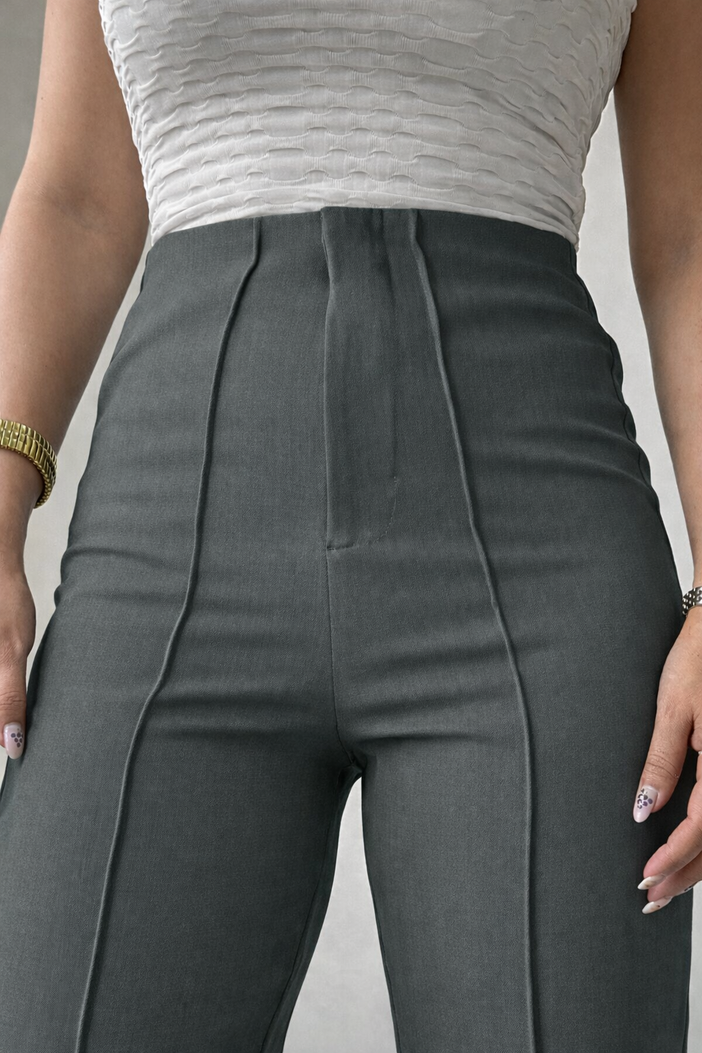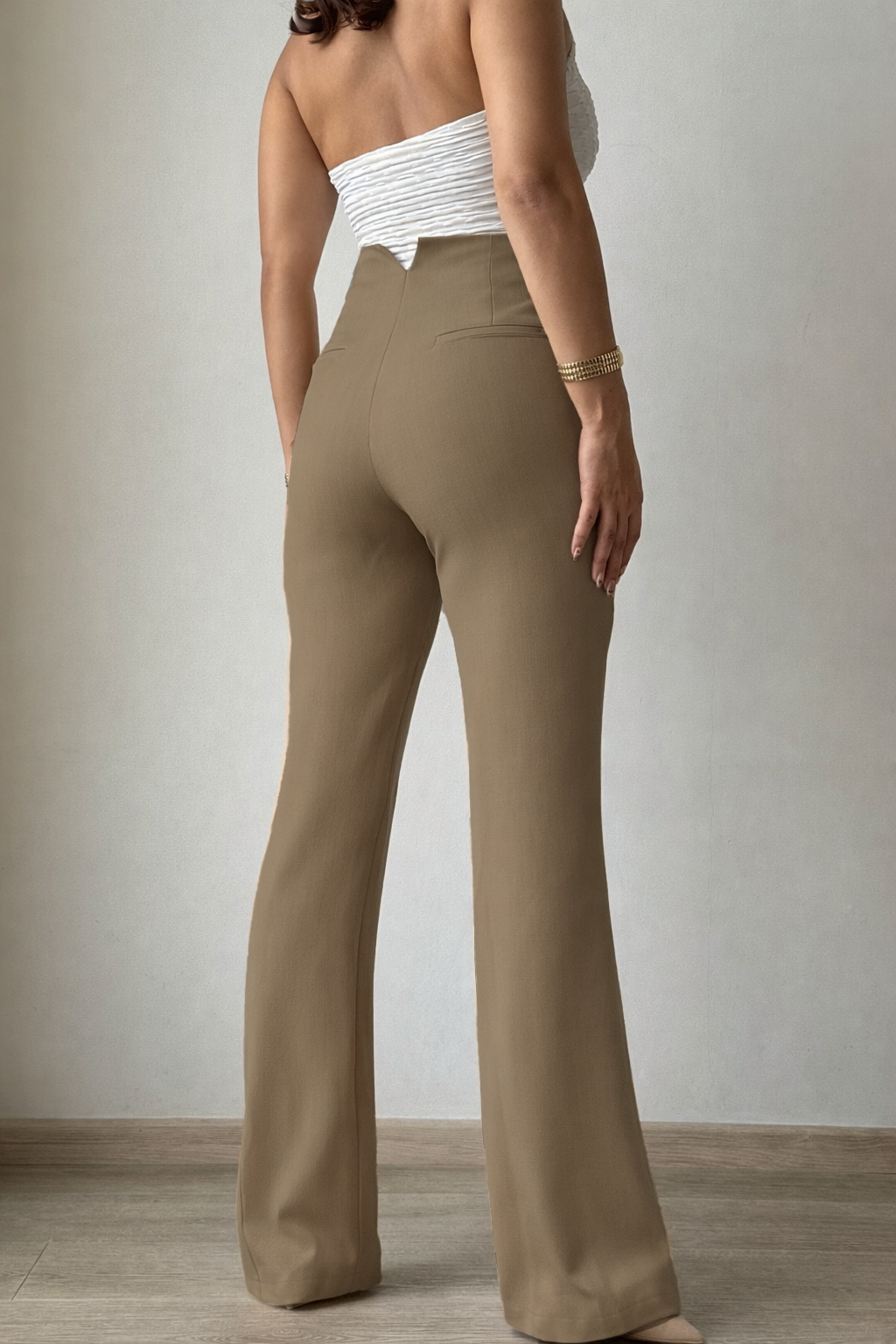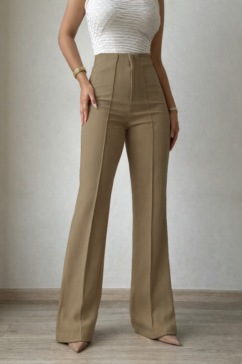 Tailored with a clean, elongated silhouette, the Structured Olive Flared Trousers are made to flatter and move with ease. Featuring front seam detailing and a subtle flare, they bring just the right balance of edge and elegance. The fabric’s slight stretch and mid-weight feel offer all-day comfort while holding shape—perfect for dressed-up or down looks.