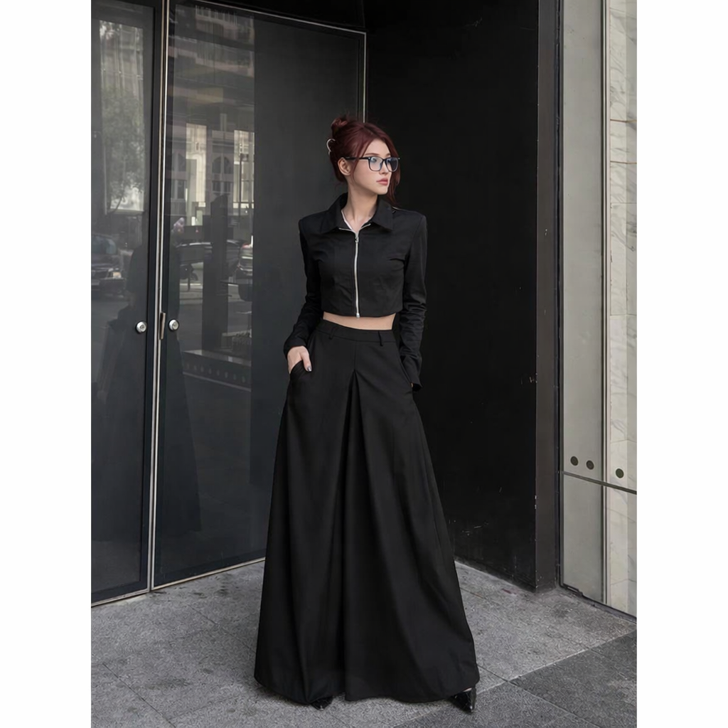 Designed with a clean, elongated silhouette, the Sakura Bloom Wide Leg Trousers bring understated elegance to everyday dressing. Featuring a smooth high-rise waist and fluid wide-leg fall, this style moves gracefully with the body while maintaining a polished, tailored look. The minimal construction highlights modern femininity—balancing ease, structure, and versatility.