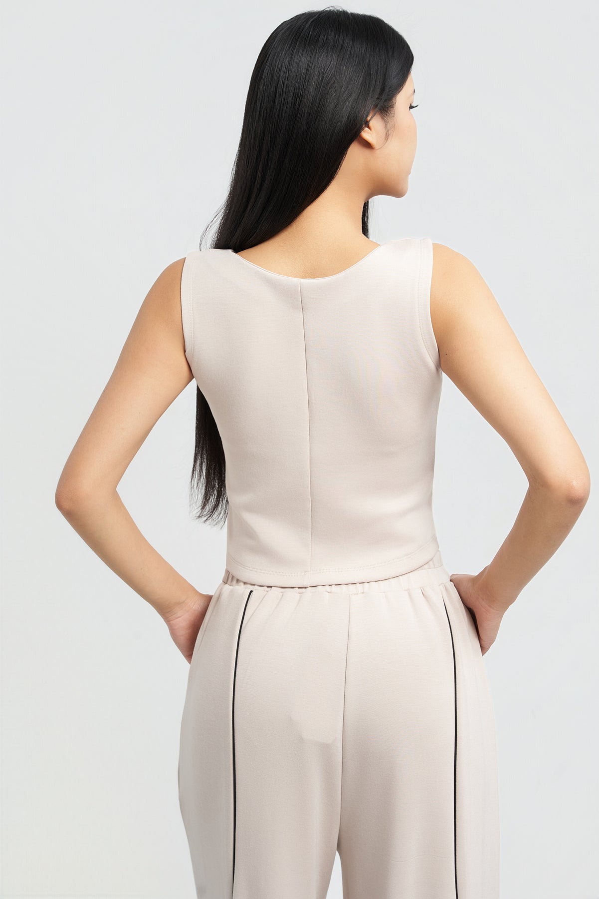 Minimal yet elevated, this sleeveless top is defined by its princess line detailing that enhances the natural shape with clean structure. Designed with a boat neckline and a tailored fit, it’s a versatile piece that moves seamlessly from polished daywear to refined evening layering. Crafted in UltraFlex Sculpt Knit, it balances softness, structure, and stretch for all-day comfort.