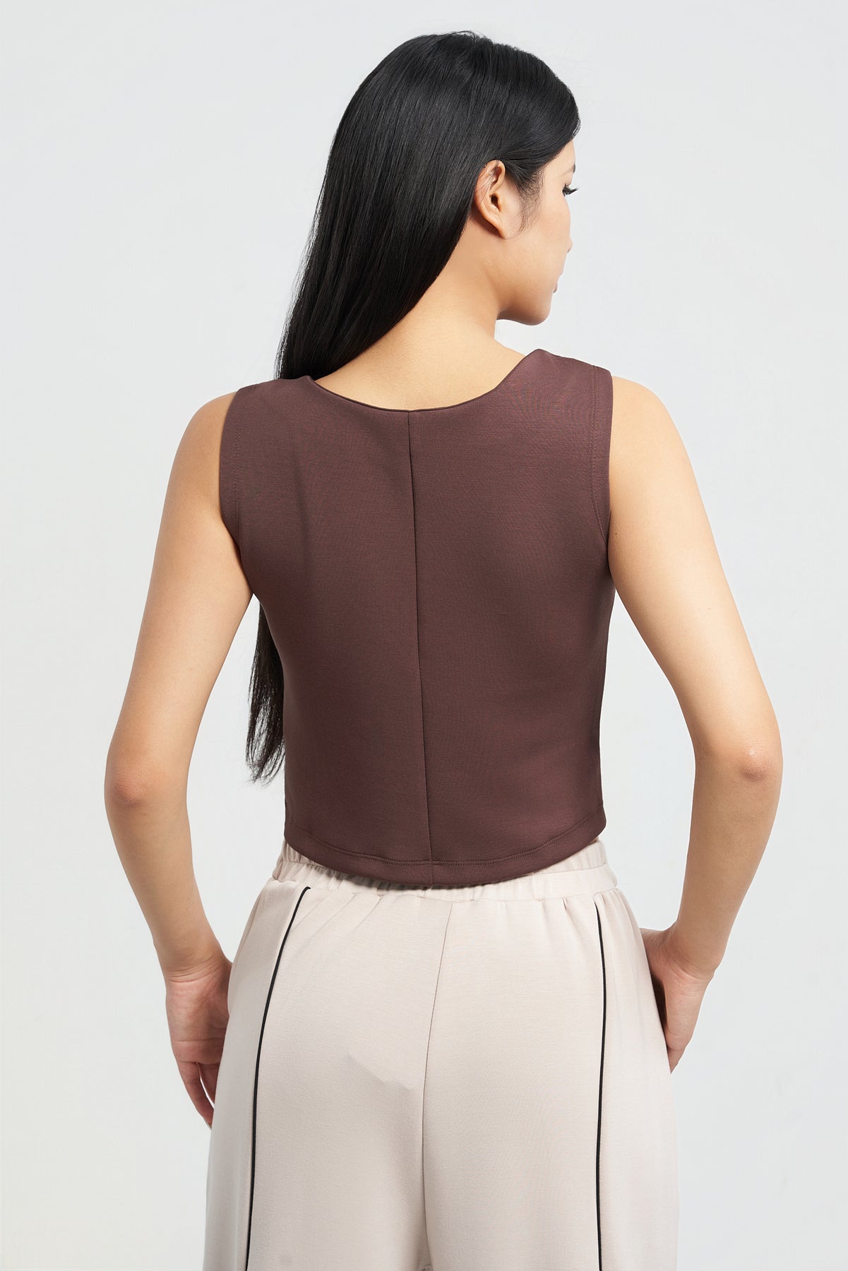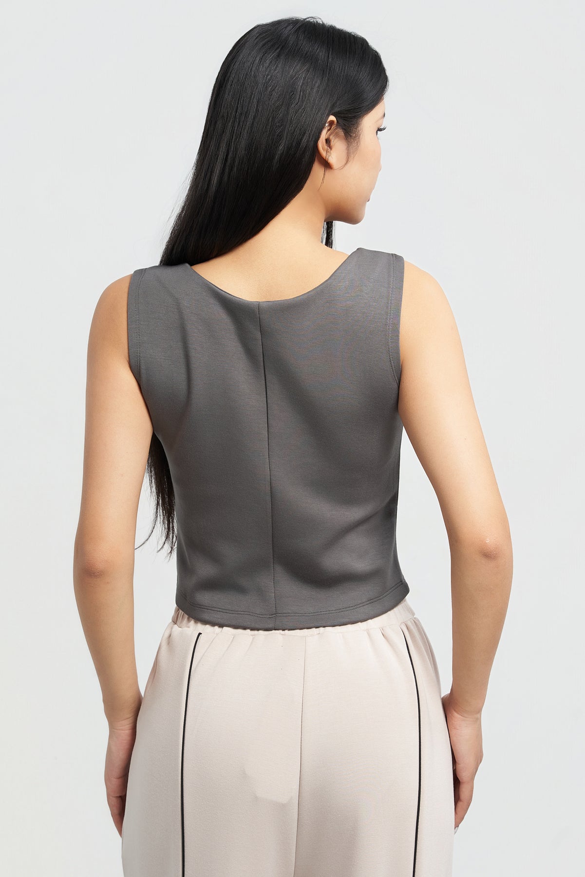 • Details: Sleeveless, Boat Neckline, Panelled Construction