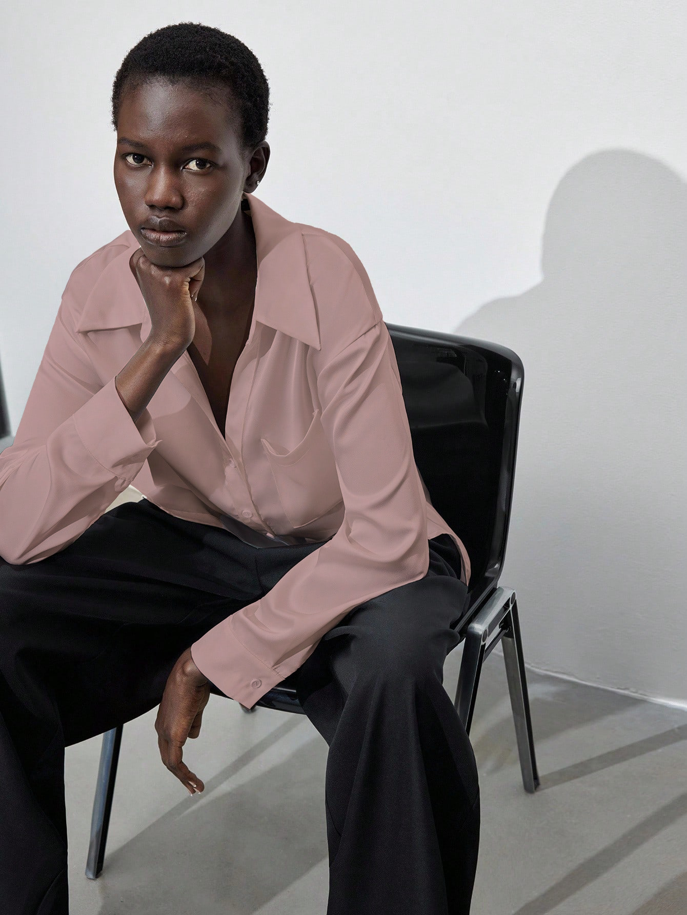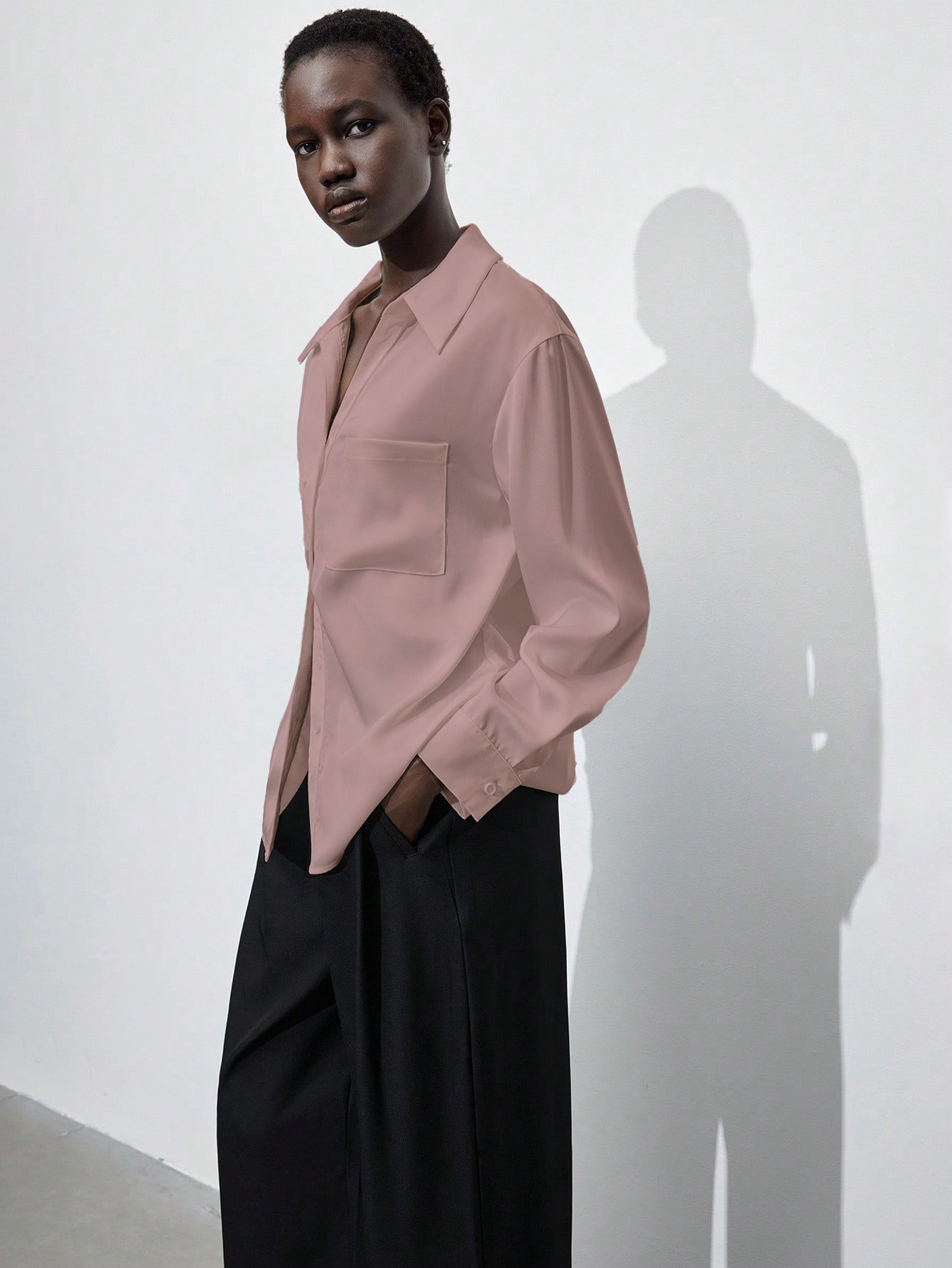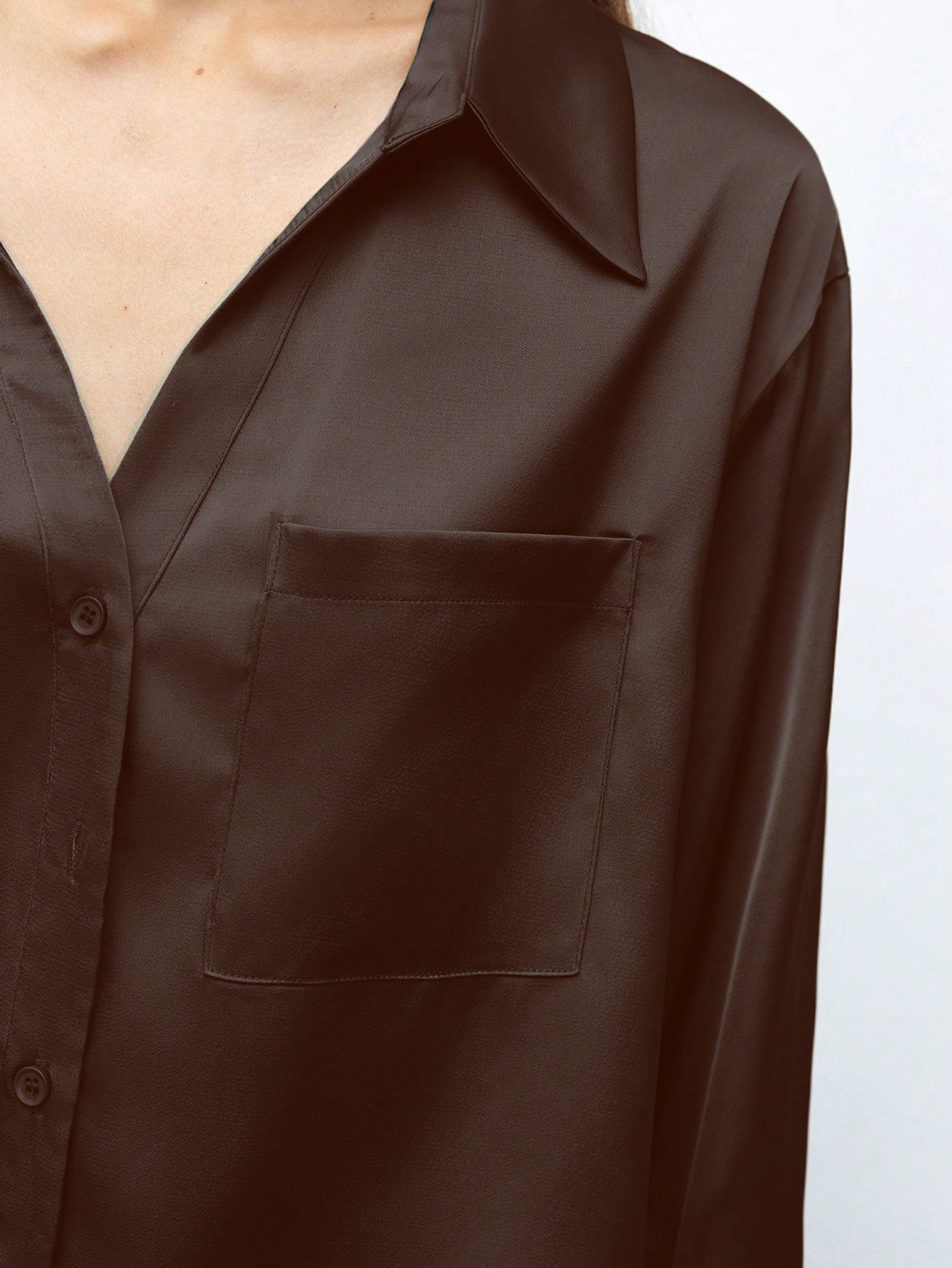 Elegant, fluid, and timelessly feminine — the Signature Ease Shirt captures everyday sophistication with a lustrous satin finish. Designed to drape beautifully and move with you, it blends subtle sheen with soft structure for a polished yet effortless look. Perfect from desk to dinner, this shirt elevates comfort into quiet luxury.