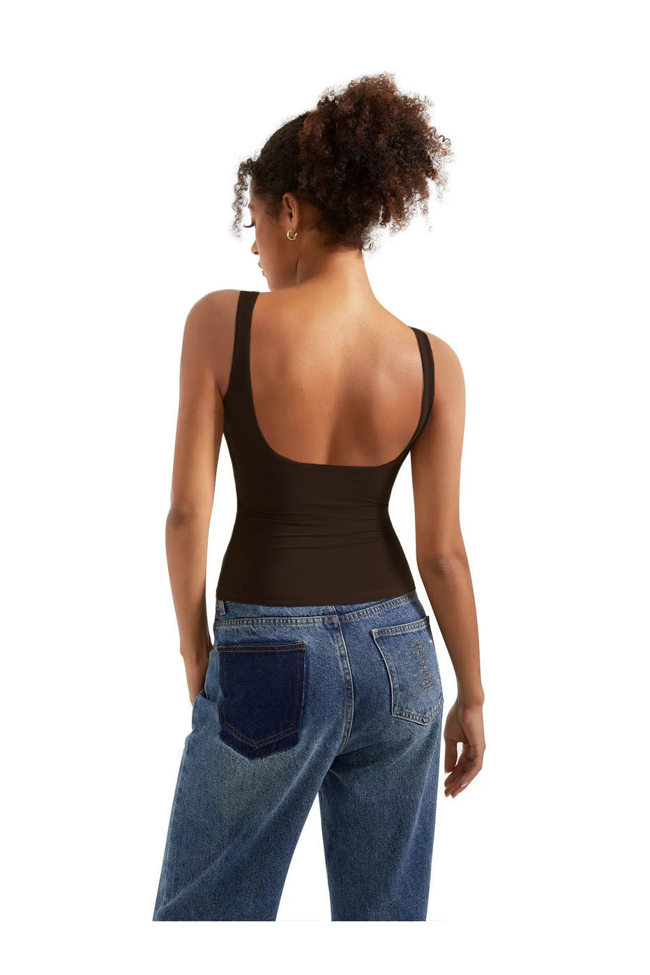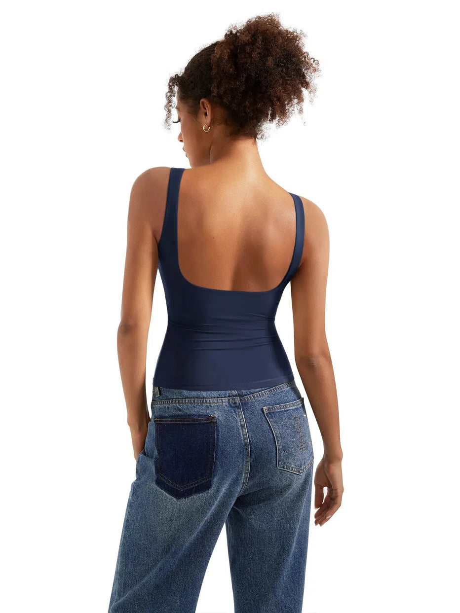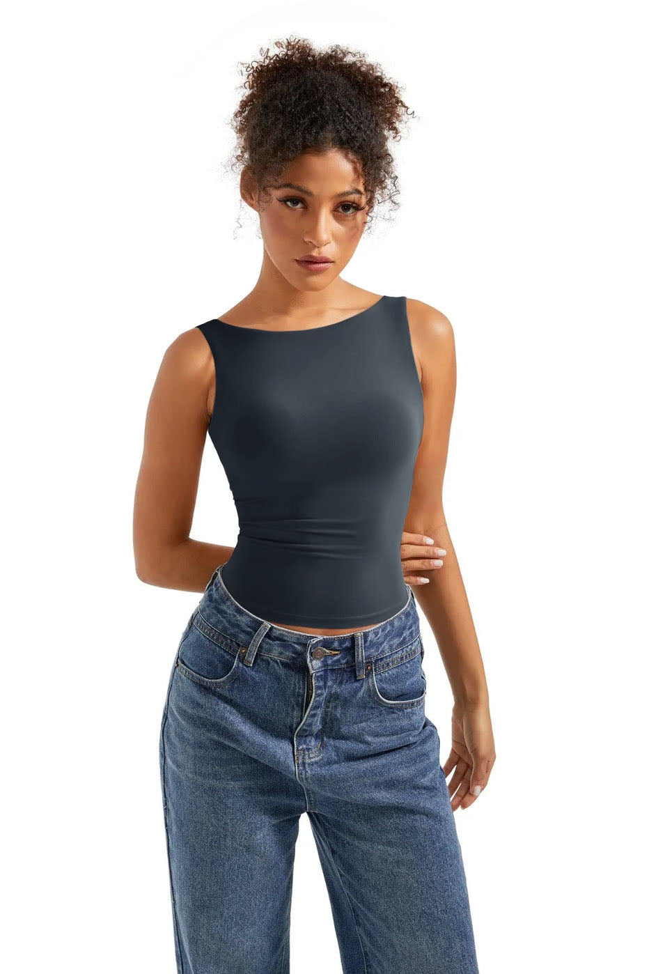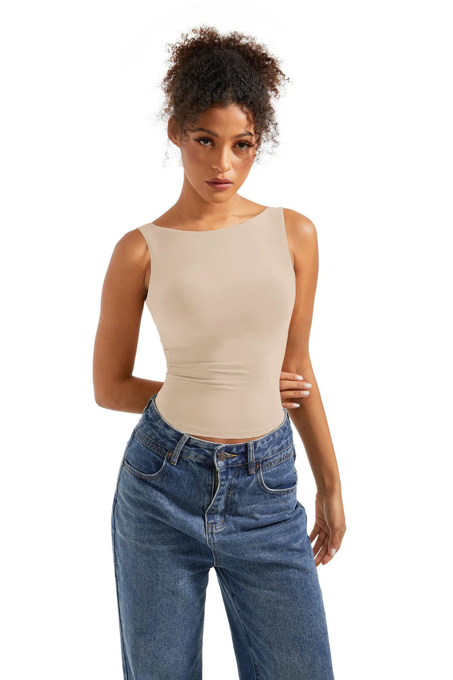 Crafted for comfort and effortless movement, this soft backless tank top drapes beautifully while offering a flattering fit. Featuring a chic boat neckline and an open-back design, it combines style with freedom of motion — perfect for workouts, yoga sessions, or casual layering. The high-stretch, breathable fabric ensures all-day comfort without compromising shape, making it a versatile essential for both active and leisure moments.