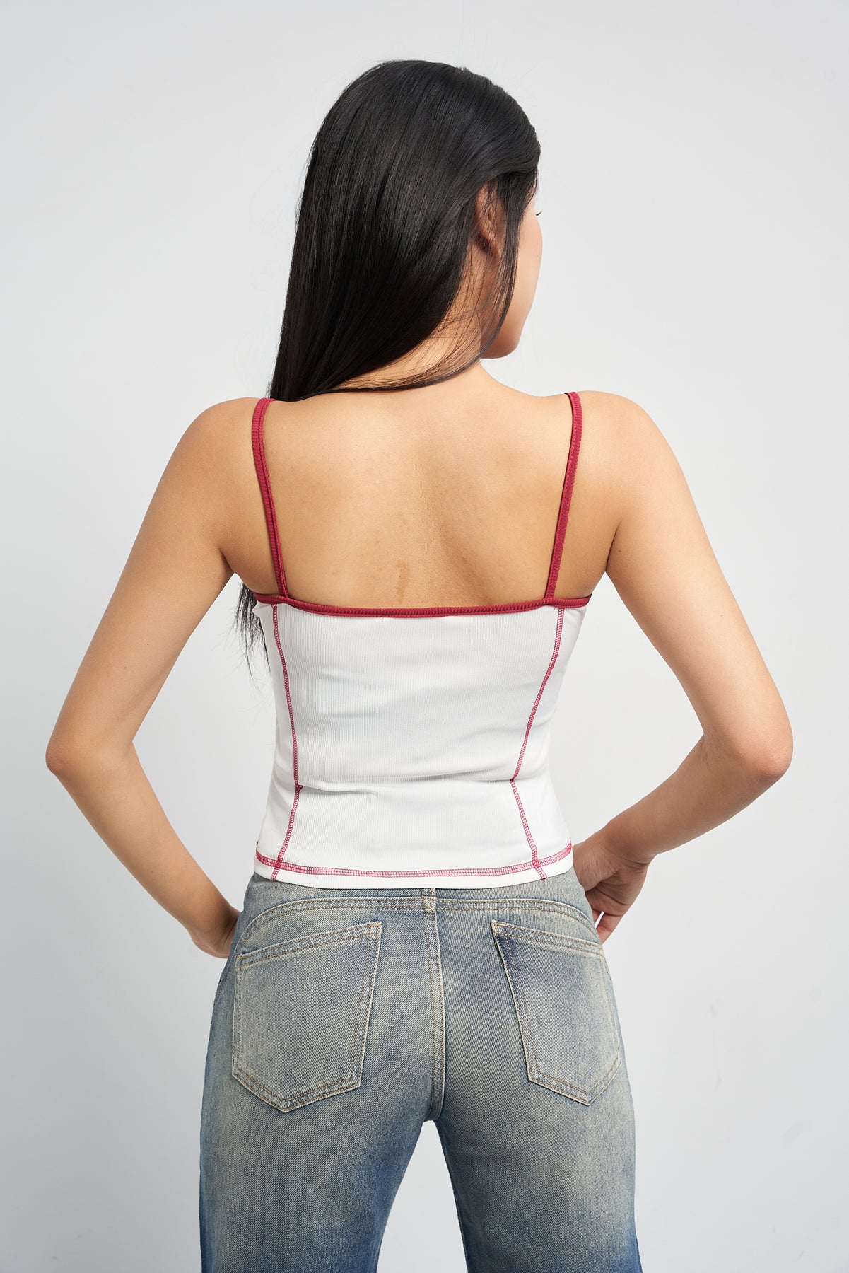 A sleek and modern cami inspired by sporty streetwear, featuring bold “Soft Rebel” front graphics and contrast piping that defines the silhouette. Its cropped fit and soft, stretchy fabric make it perfect for layering or wearing on its own. With a clean neckline and slim straps, it delivers an effortlessly edgy, minimal look.