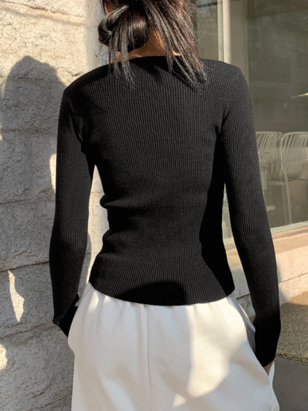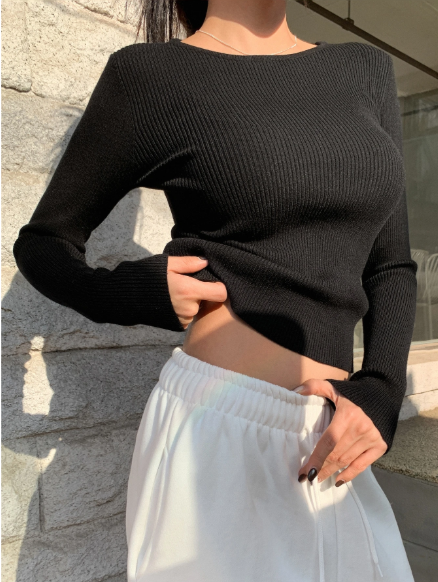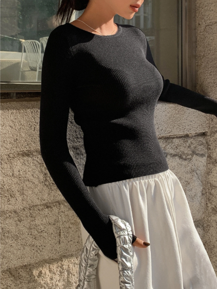 • Details: Fine rib texture, full-length sleeves, clean neckline