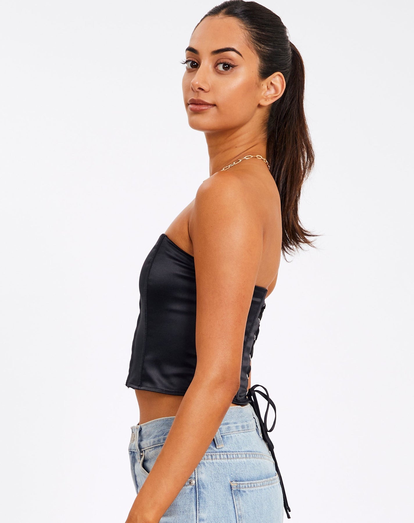 Simple yet classic is the word for this classy Satin tube crop top. With boning inside for that perfect corset feels & criss cross tie up in the back, it gives the perfect fit you need to look your best.